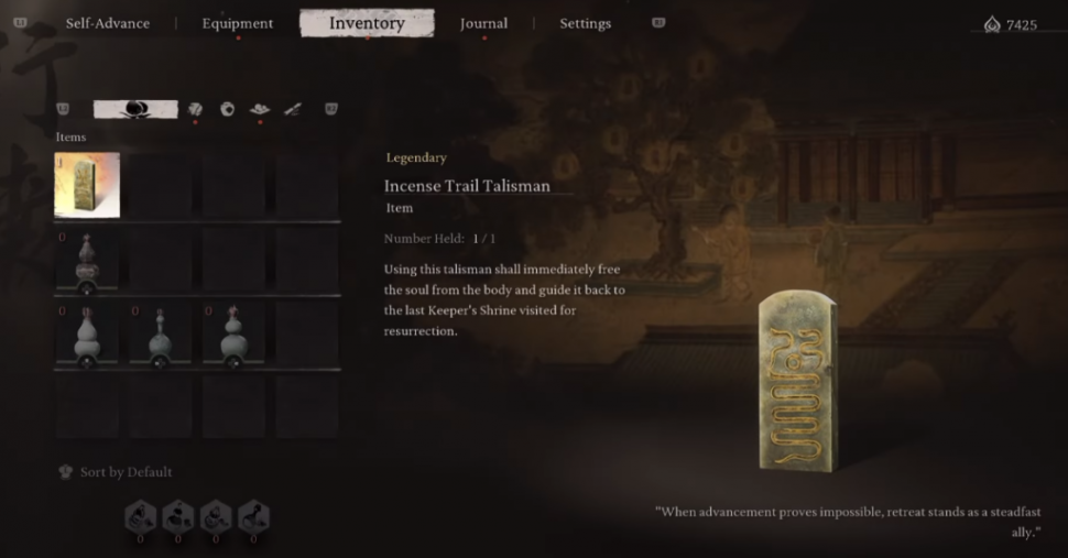 Кроме того, «Талисман тропы благовоний» позволяет игрокам вернуться к последнему святилищу, у которого они отдыхали, что облегчает перезагрузку и повторение процесса фермерства.