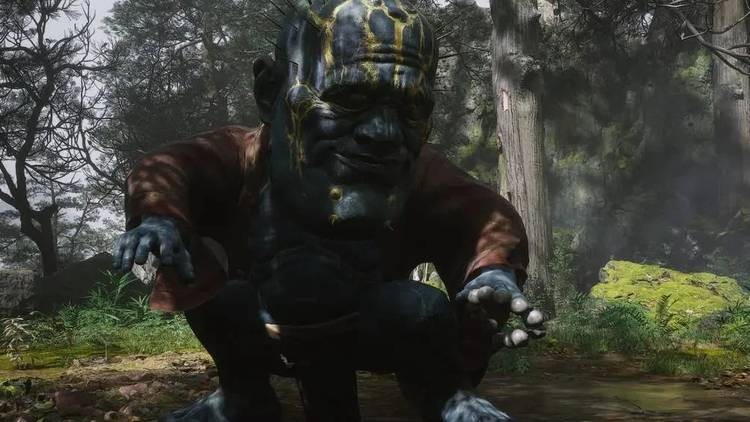 От святилища «За пределами леса» идите по главной тропе, пока не встретите одинокого врага у низкого моста. Победите его и перейдите через мост, чтобы найти Блуждающего монаха - зеленое существо с очень большой головой. Он будет бродить по поляне, охраняя вход в туннель.