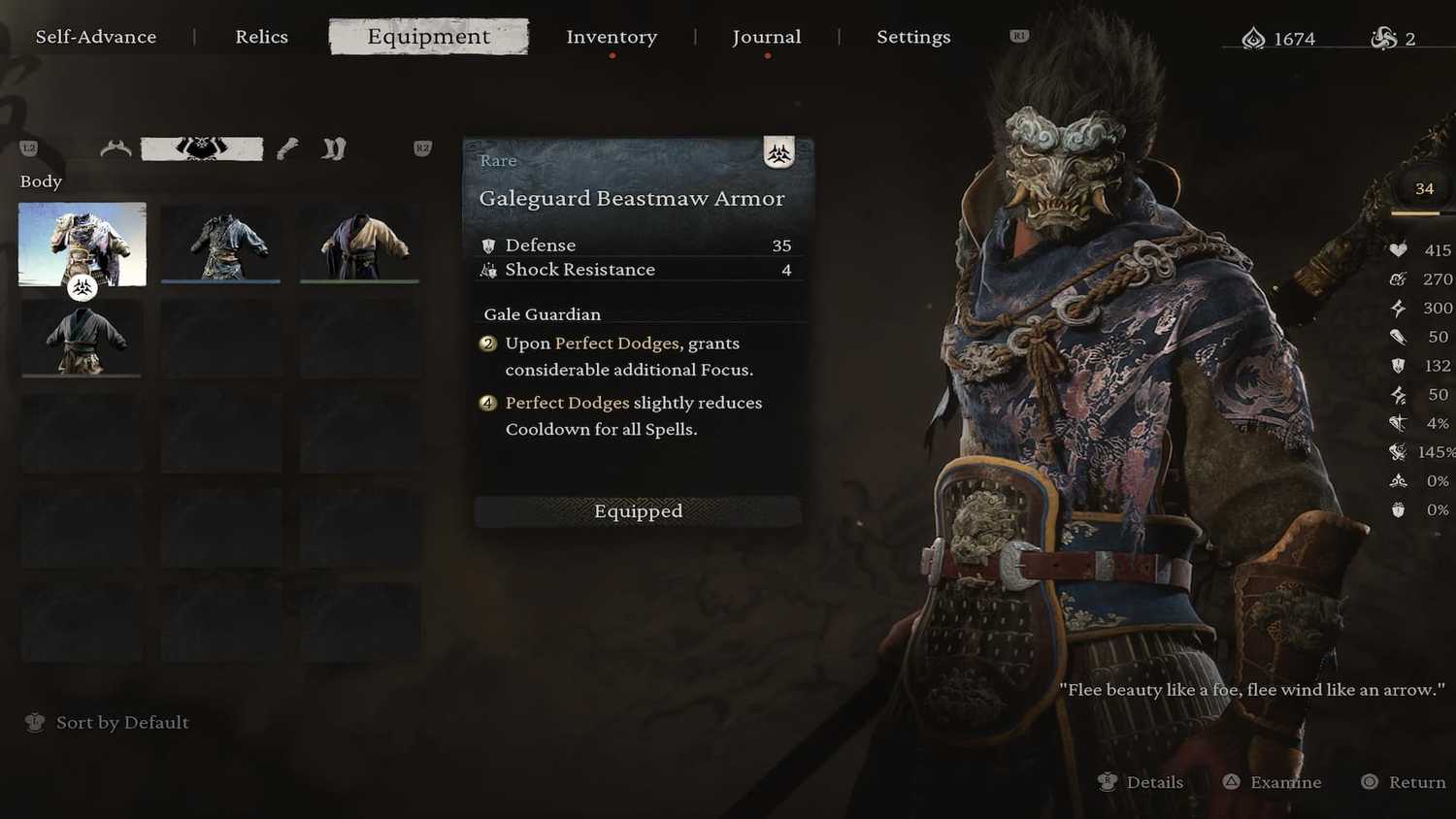 Есть три комплекта брони, на которые игрокам стоит обратить внимание, как только они будут разблокированы в первых нескольких главах игры: «Страж шторма», «Танец черного ветра» и «Зловещий крушитель». Все они создаются в ближайшем святилище из таких материалов, как шелк.