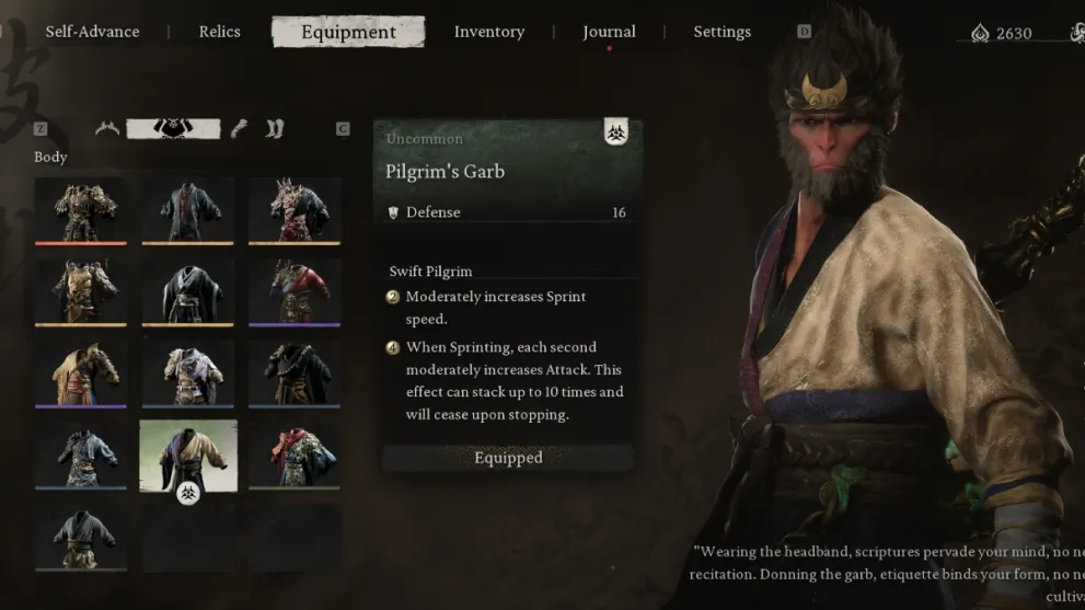 - Основное оружие: Посох Цзингубанга - идеальное оружие для этой сборки. Полученный в 6-й главе, он обладает самым высоким потенциалом урона и хорошо сочетается с комплектом доспехов Вуконга. Если у вас еще нет посоха Джингубана, то посох зверя Бишуй из главы 5 станет подходящей альтернативой, предлагая более высокий коэффициент крита за счет более низкого базового урона. Только постарайтесь приобрести посох с высоким показателем крита.