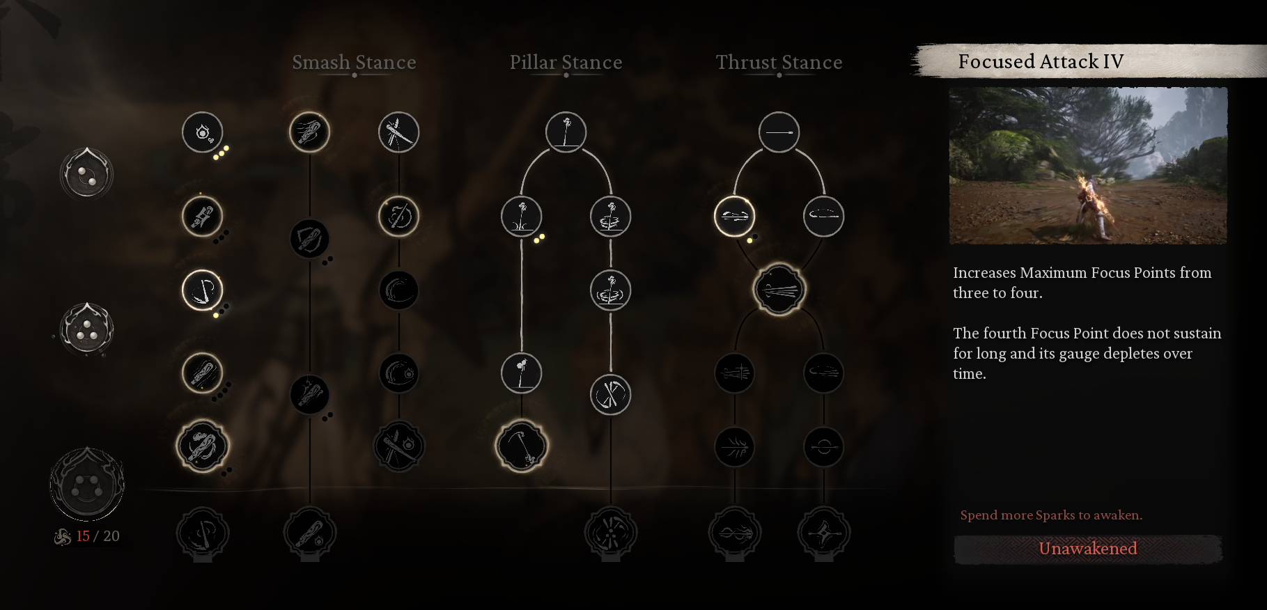 - 4 Очка Фокуса: Потратьте 20 очков Искры на дерево Стойки с посохом.
