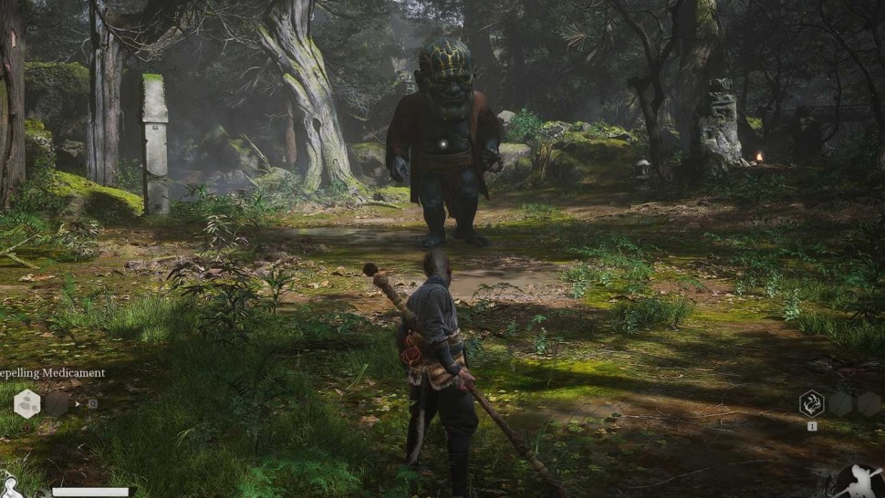 Продолжайте двигаться вперед, побеждая всех врагов и собирая по пути растения. В конце концов вы столкнетесь с первым настоящим боссом - Бычьим Стражем. Вместо того чтобы сразу атаковать его, идите по левой тропинке, где возле скалы вы найдете существо (увидев вас, оно убежит). Подойдите к камню, чтобы получить Скандху формы - ключевой предмет, который пригодится вам позже.