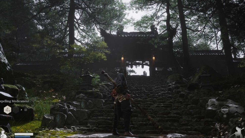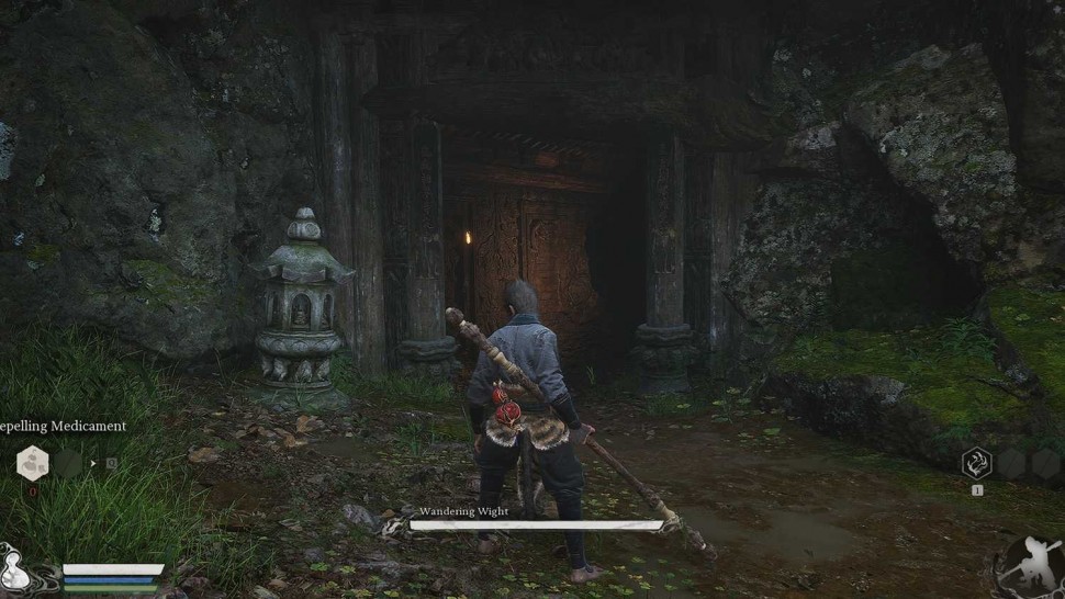 Продолжайте идти по тропе, где находился босс, и следуйте по ней, побеждая всех врагов на своем пути. В конце концов вы доберетесь до места, где можно помедитировать - это первое из трех мест медитации в регионе Black Wind Mountain.