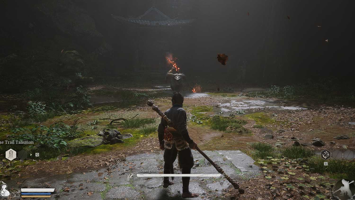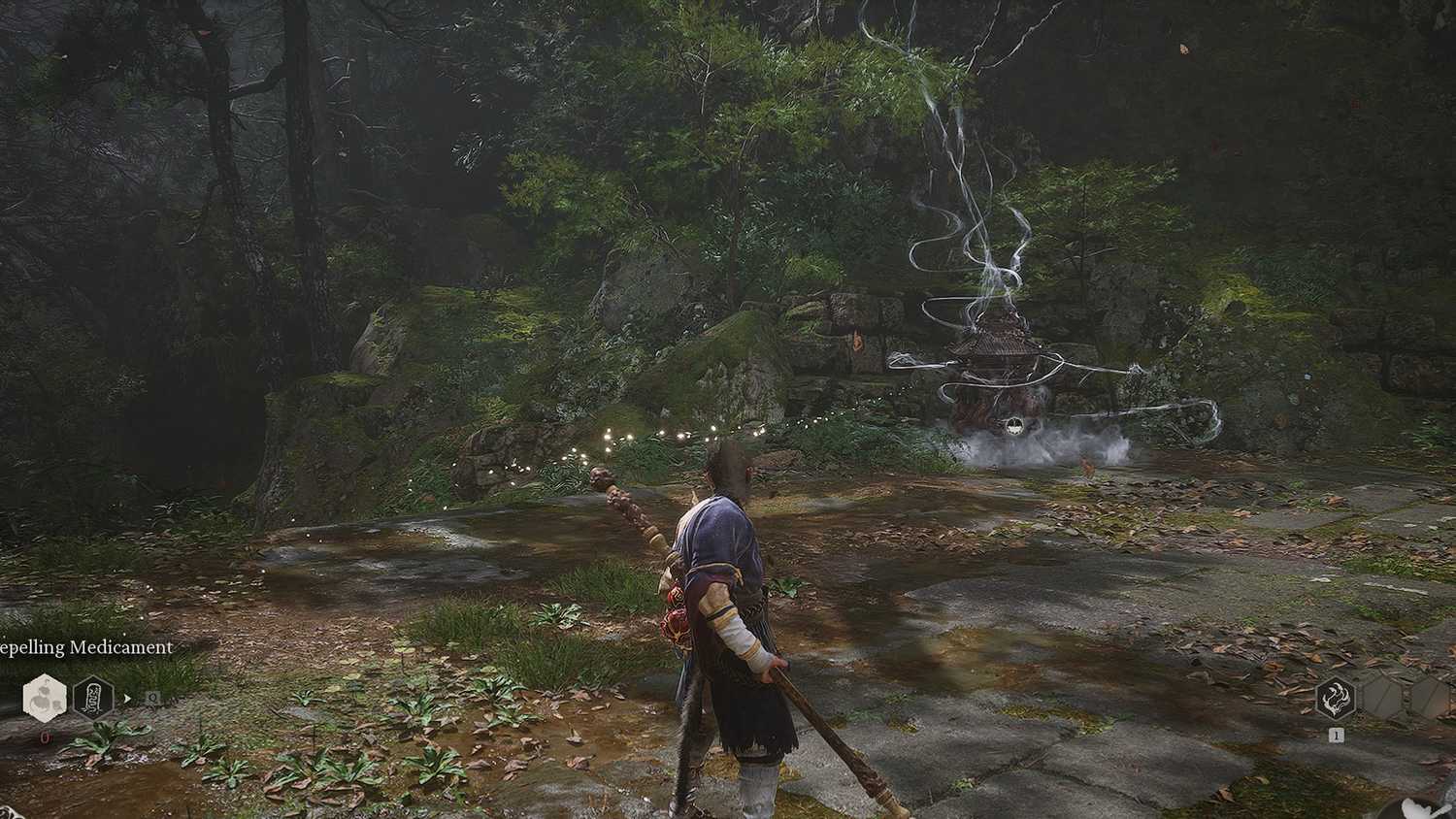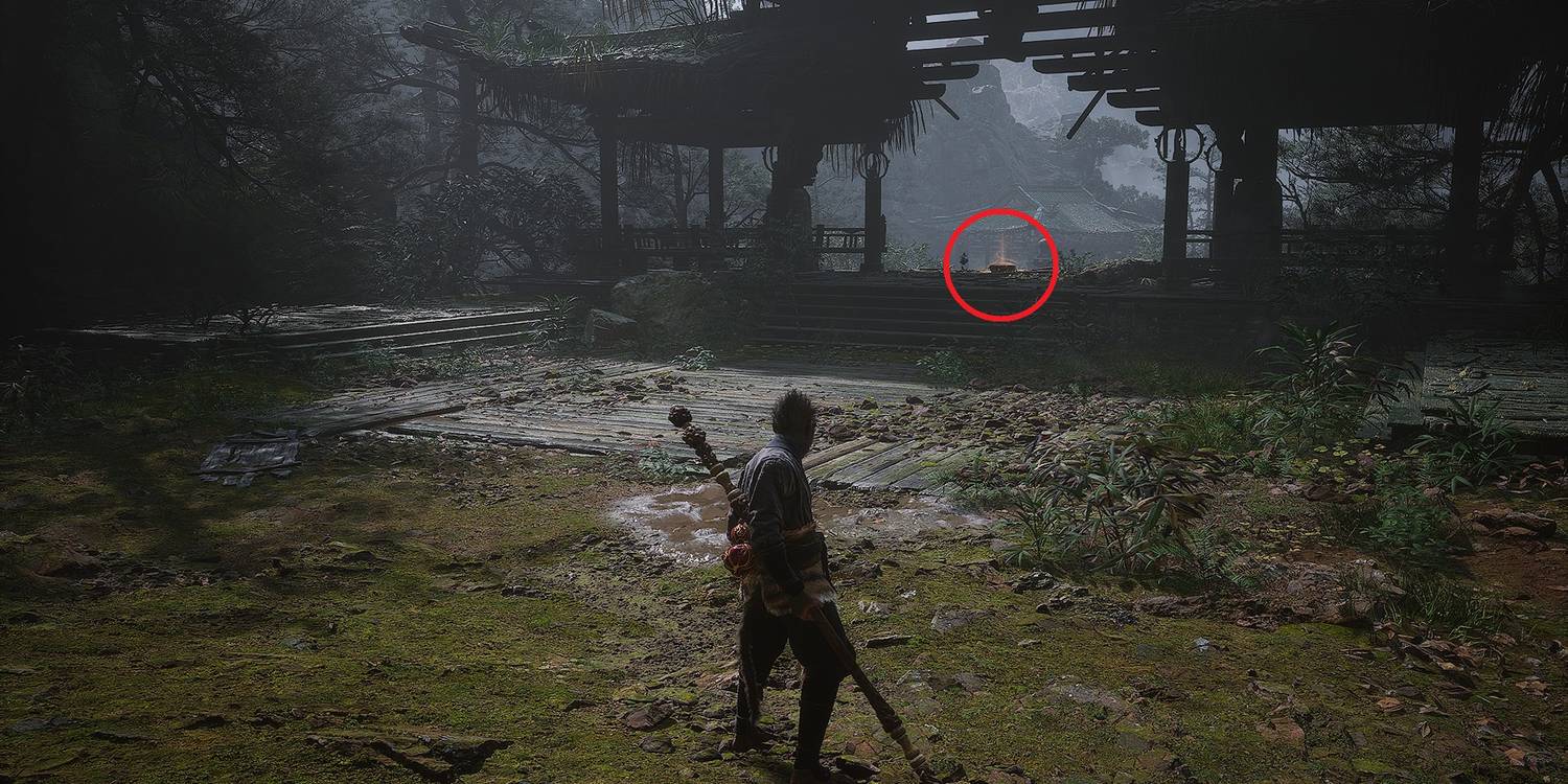 Продолжайте идти по тропе, где находился босс, и следуйте по ней, побеждая всех врагов на своем пути. В конце концов вы доберетесь до места, где можно помедитировать - это первое из трех мест медитации в регионе Black Wind Mountain.