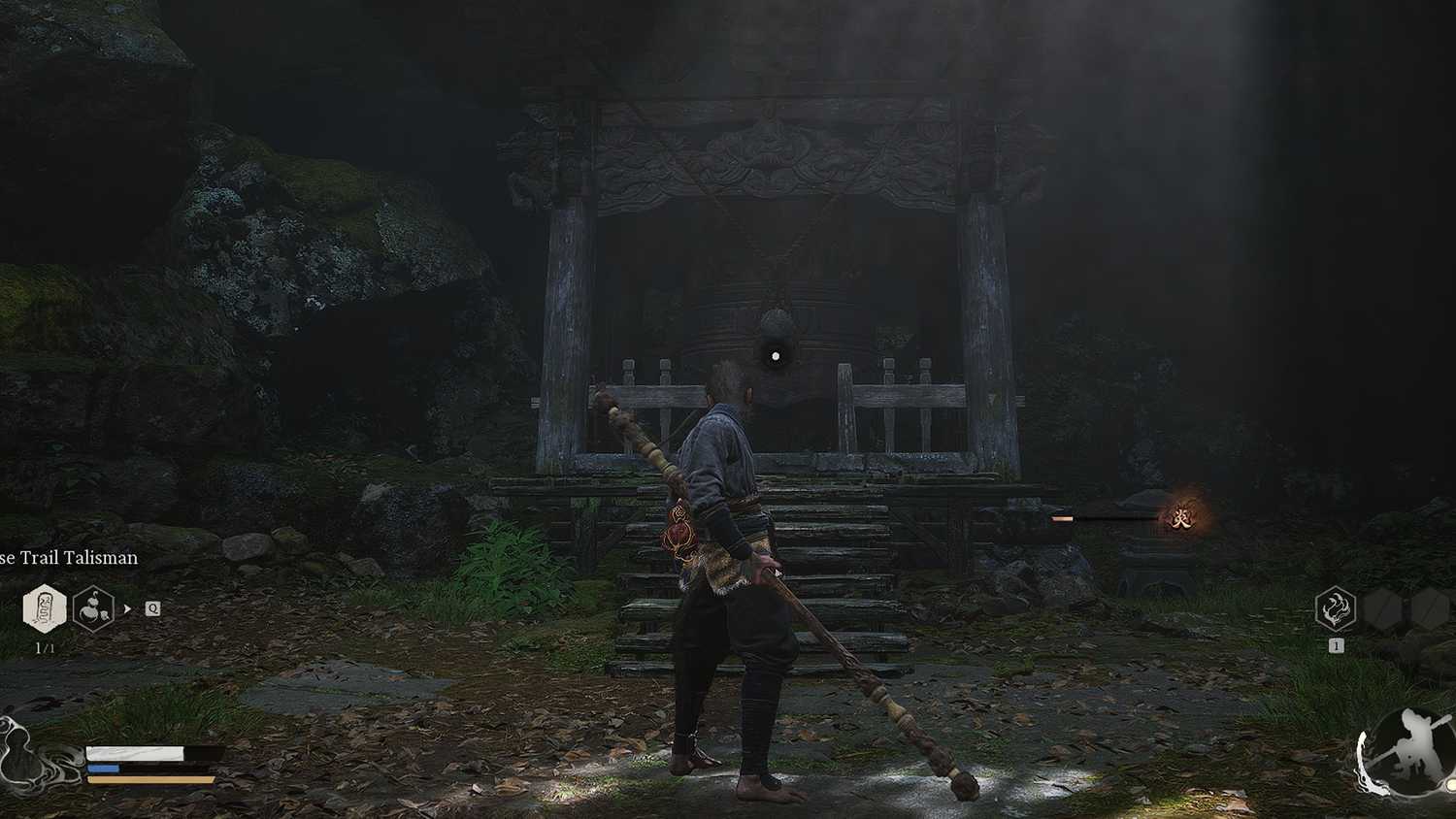 Победив босса, подберите его посох, чтобы получить в награду заклинание «Красные Приливы». После этого взаимодействуйте с массивным колоколом перед вами. Это один из трех колоколов, в которые нужно позвонить в главе «Черное облако, красный огонь», чтобы открыть секрет.