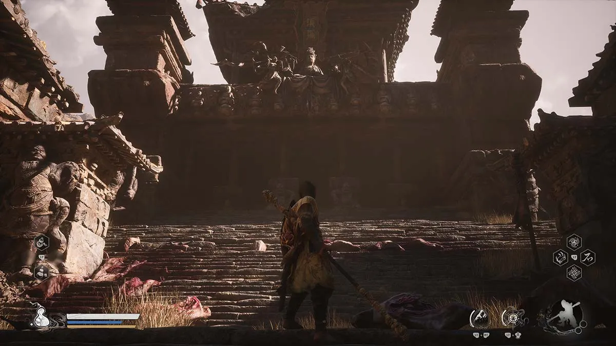 В игре Black Myth: Wukong Глава 2 вы найдете Тигра Авангард в Храме Крадущегося Тигра. Чтобы попасть туда, начните с арены боссов, где вы сражаетесь со вторым крысиным принцем и королем текучих песков. Направляйтесь налево и войдите в пещеру. Здесь вы сможете встретиться с Первым принцем текучих песков. Если вы будете держаться правой стороны пещеры, то найдете каменную дорожку, которая пересекает небольшую пропасть внизу.
