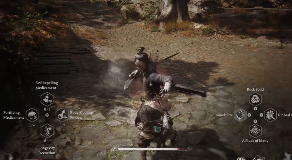 Ошеломление и парирование: Успешное парирование его атак может ошеломить Даоса Ми, что позволит вам провести мощную контратаку. Время здесь играет решающую роль, так как пропуск парирования может оставить вас открытым для дальнейшего урона.