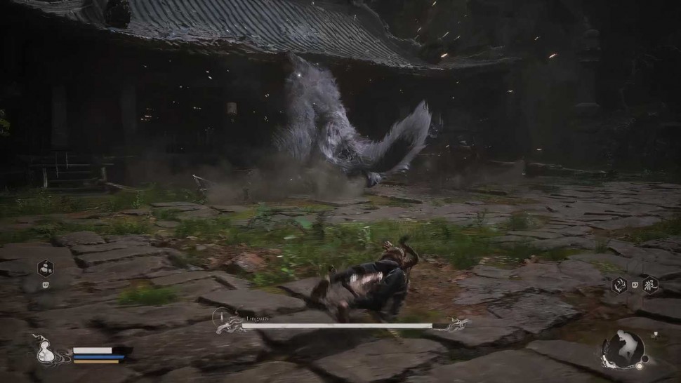 Потеряв от 30 до 40 % здоровья, босс запрыгнет на крышу и проведет атаку слэмом. Если вы засекли босса, то сможете легко отследить его передвижения и увернуться от слэма, когда он будет падать вниз. Теперь босс выполнит новую атаку: укус, когда Лин-Суй-Цзы кладет голову на землю и кусает вас. От нее также легко увернуться, но она наносит большой урон, если вы попадете под нее. Последняя атака босса - когда он начинает бегать по кругу, а затем наносит размашистый удар или слэм. После замаха босс обычно остается широко открытым, поэтому вы можете нанести несколько ударов, если сумеете идеально увернуться от замаха.