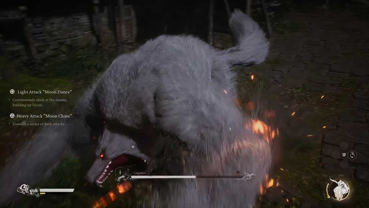 Иногда босс ни с того ни с сего начинает лизать свою руку. Если вы находитесь рядом с боссом, это отличная возможность для атаки, так как после облизывания руки босс ничего не делает. Вы должны хорошо использовать заклинание обездвиживания и трансформации босса, чтобы временно поджечь волка.