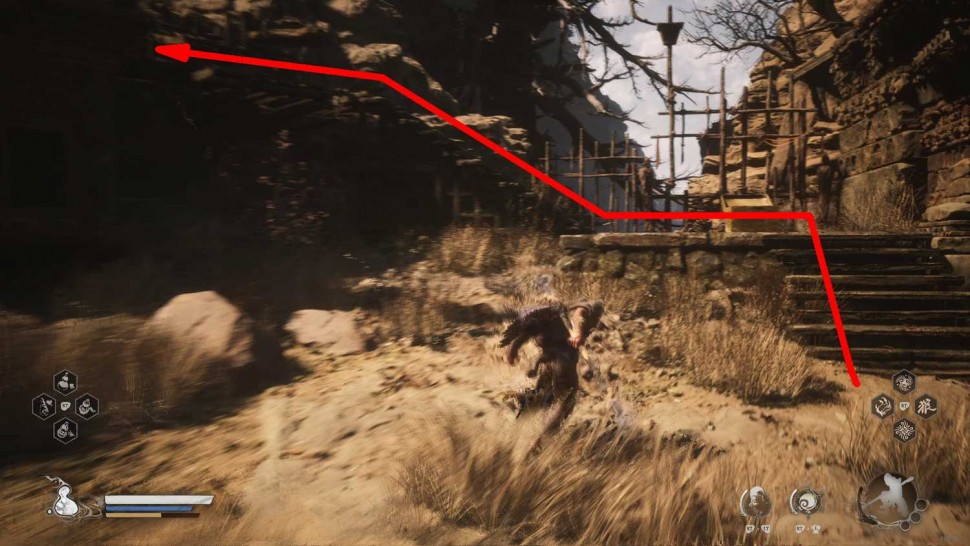 Теперь игрокам следует вернуться к началу пути, по которому они только что добрались до четвертого глаза Будды, и повернуть налево. Затем фанаты должны подняться по склону через пещерную область, держась левее, когда это возможно. Если двигаться в этом направлении, то в конце концов вы столкнетесь с Матерью Камня, боссом в Black Myth: Wukong, и на правой стороне ее арены есть путь, ведущий к Глазу Будды.
