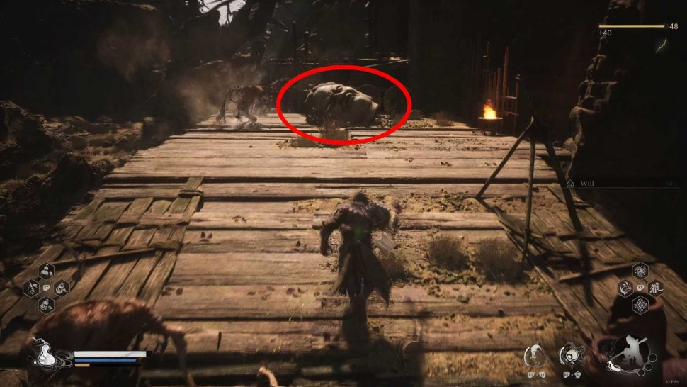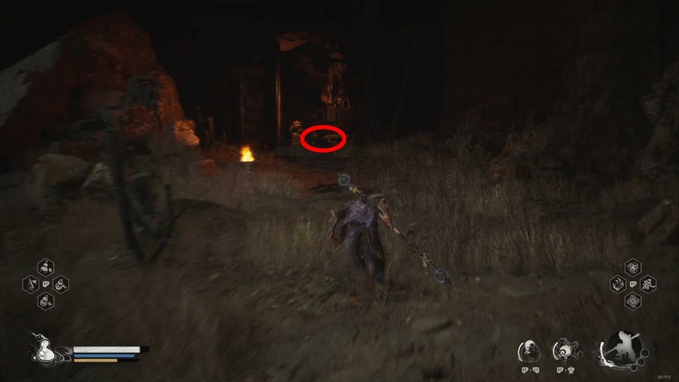 Активировав святилище хранителя убежища Шквала, игроки должны пройти мимо него, придерживаясь тропинки справа. Когда любители экшенов пойдут в этом направлении, они увидят деревянные подмостки, с которых несколько врагов выпускают снаряды. На эти леса можно попасть по деревянной лестнице, а в дальнем конце находится глазное яблоко Будды, которое нужно собрать.