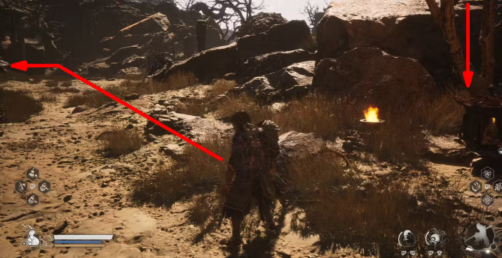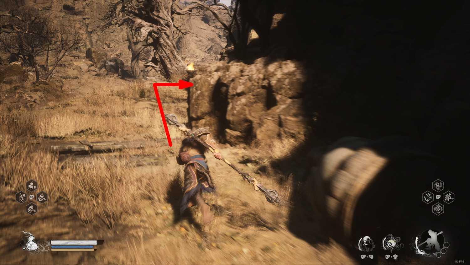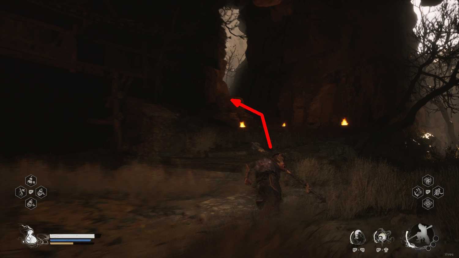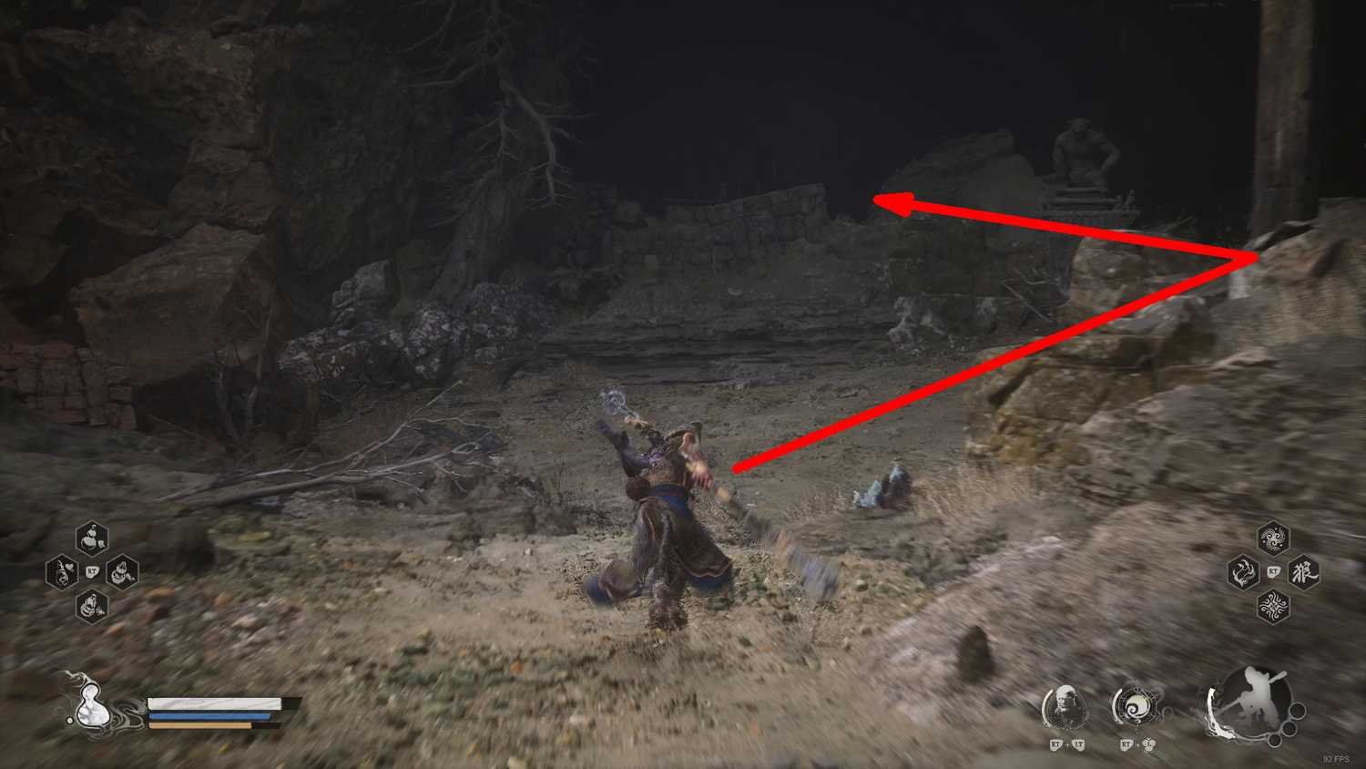 Теперь игрокам следует вернуться к началу пути, по которому они только что добрались до четвертого глаза Будды, и повернуть налево. Затем фанаты должны подняться по склону через пещерную область, держась левее, когда это возможно. Если двигаться в этом направлении, то в конце концов вы столкнетесь с Матерью Камня, боссом в Black Myth: Wukong, и на правой стороне ее арены есть путь, ведущий к Глазу Будды.