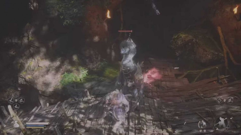Вы откроете пропитки после встречи с обезьянкой Шэнь, на которую напал Змей Гуай в конце Бамбуковой рощи. После победы над ним появится сцена, в которой он приглашает вас присоединиться к нему в соседней пещере и упоминает, что змеиная желчь хороша, если ее «выпить». Примите его предложение и отправляйтесь в пещеру, где он выступает в роли торговца и может улучшить вашу горлянку. Здесь же можно применить замачивание в целебном напитке, а встреча с обезьяной Шен также разблокирует эту способность во всех святилищах.