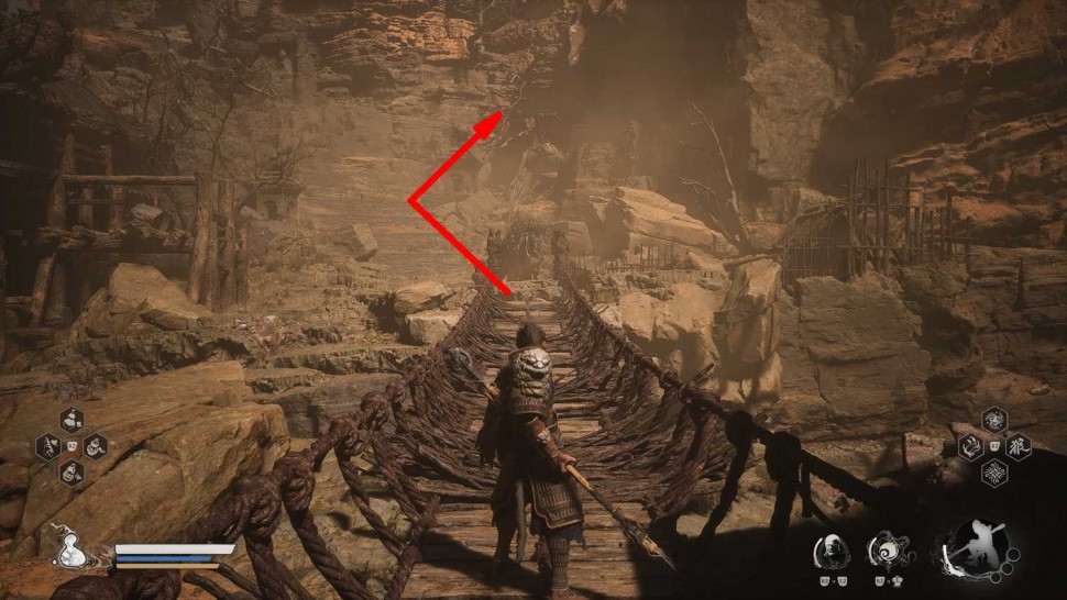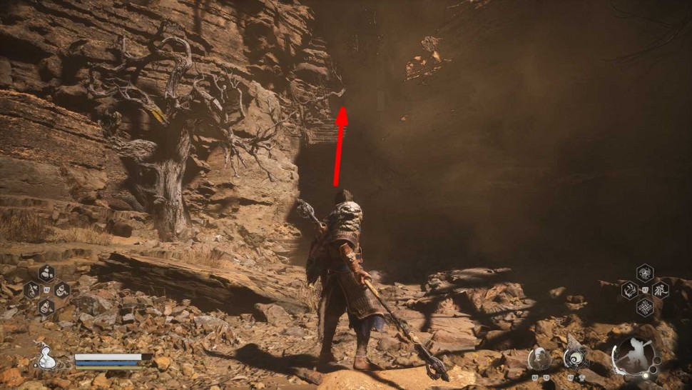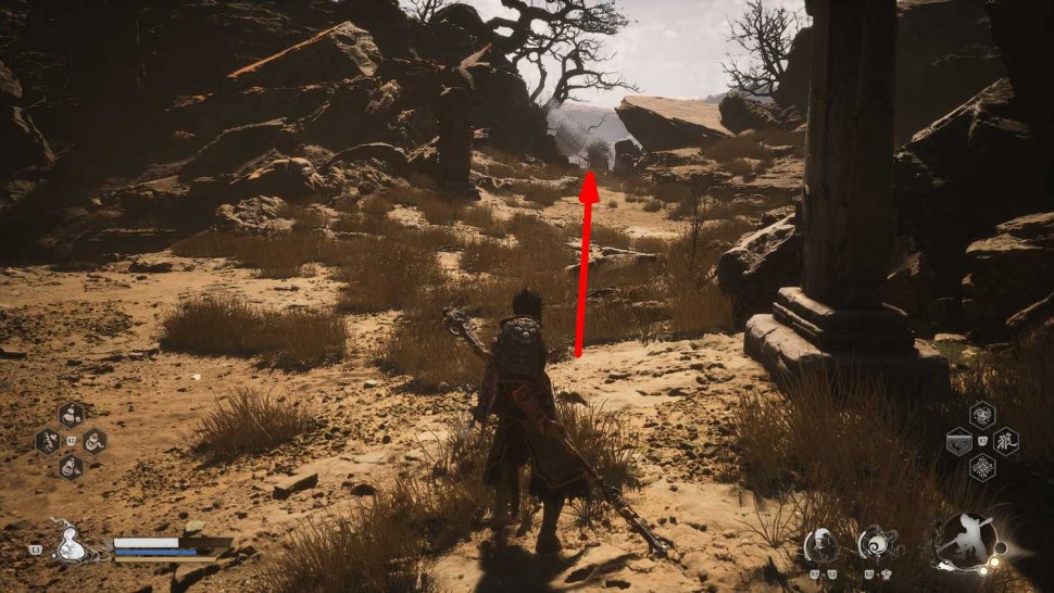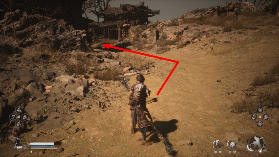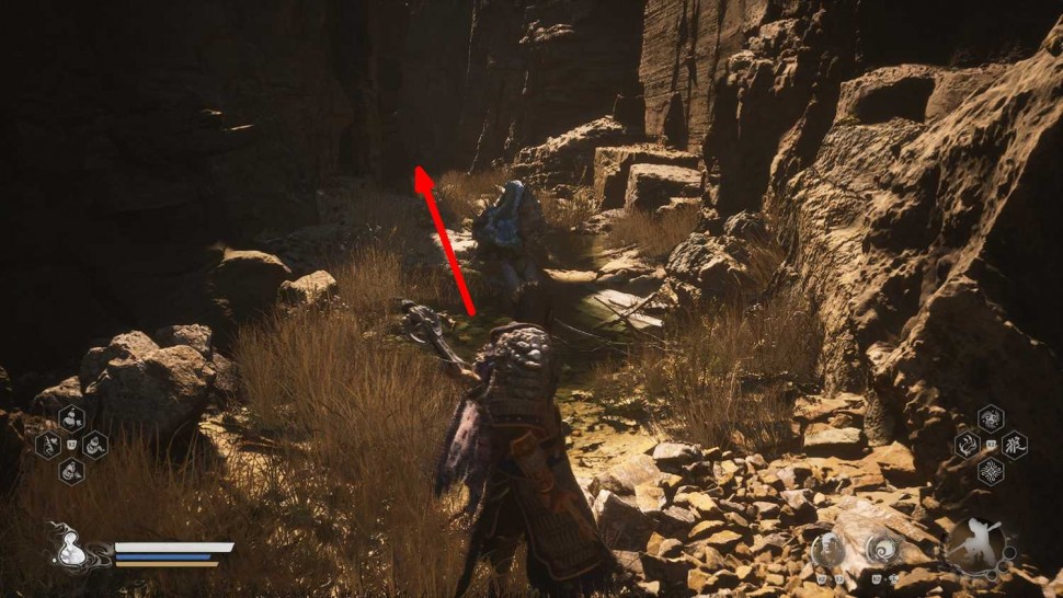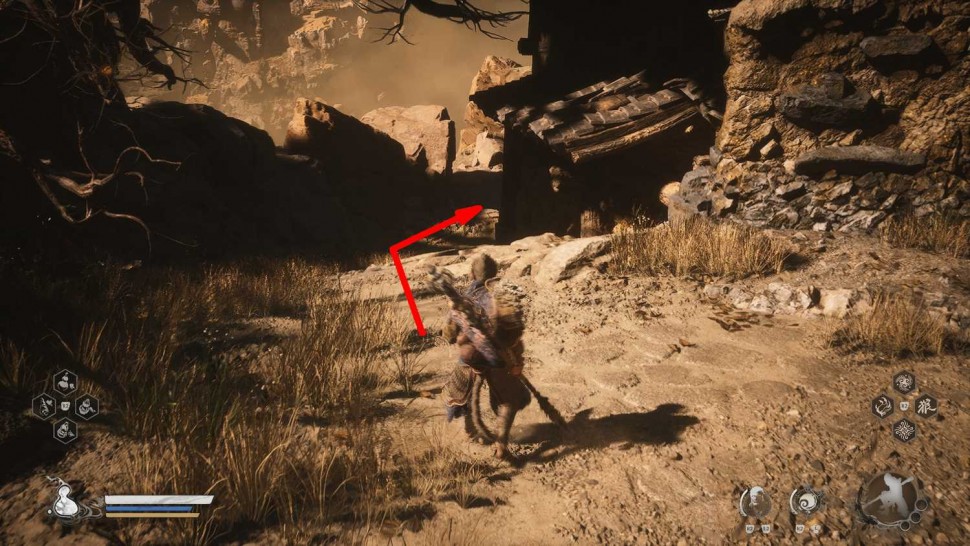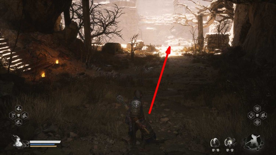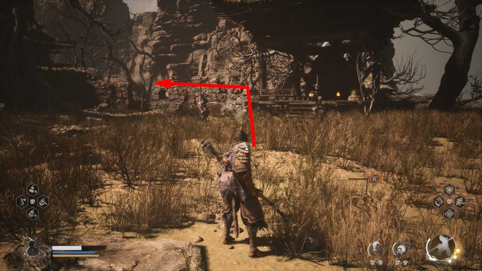 - Экипируйте Дух Блуждающего Монаха из Black Myth: Wukong и используйте его способность, чтобы сломать украшенную стену на арене.