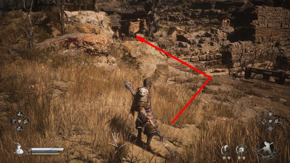 Игроки Black Myth: Wukong снова должны начать со святилища хранителя входа в деревню. На этот раз фанаты должны пересечь близлежащий мост, а затем пройти вперед и направо. Теперь игроки должны оказаться на открытой местности с несколькими врагами. В правой части этой зоны есть деревянные ворота, которые можно открыть, а за ними можно найти Короля текучих песков и Второго крысиного принца.