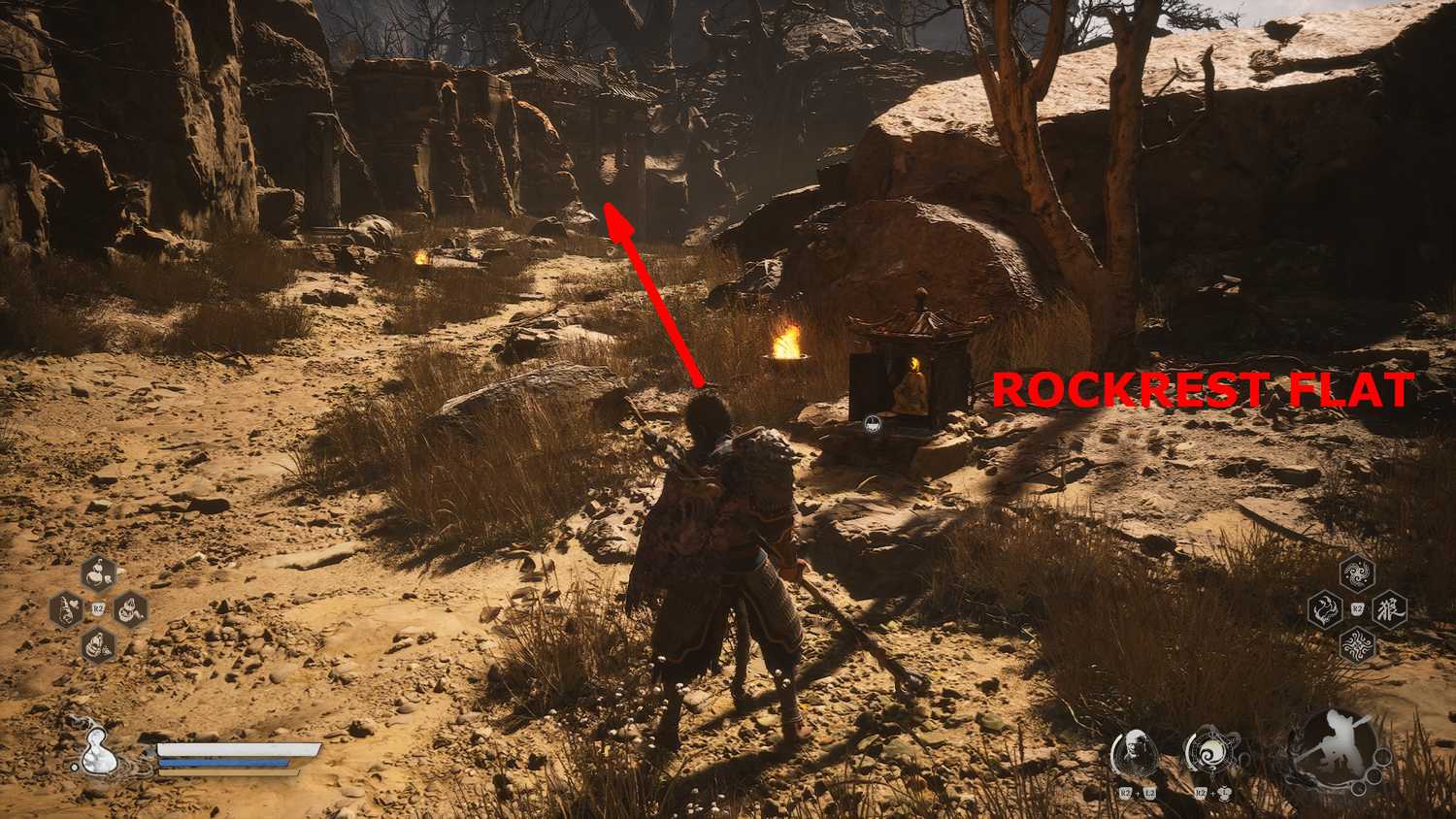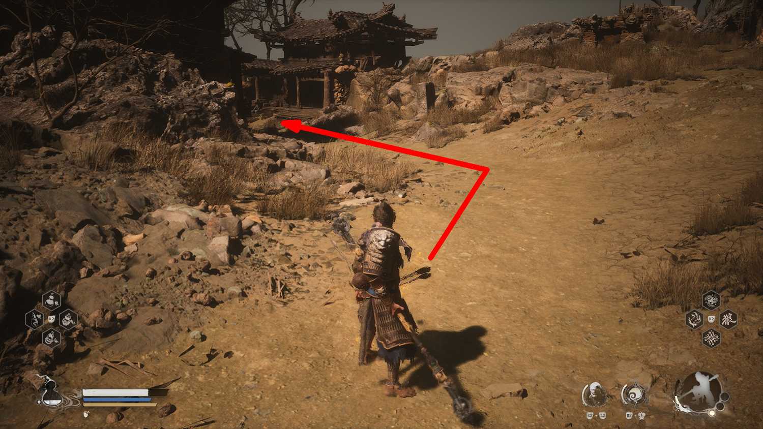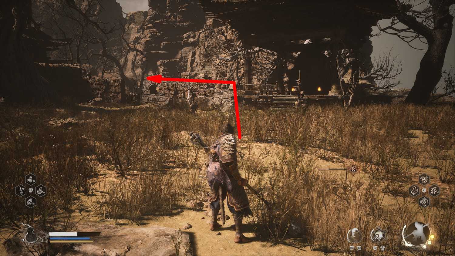 Игроки Black Myth: Wukong снова должны начать со святилища хранителя входа в деревню. На этот раз фанаты должны пересечь близлежащий мост, а затем пройти вперед и направо. Теперь игроки должны оказаться на открытой местности с несколькими врагами. В правой части этой зоны есть деревянные ворота, которые можно открыть, а за ними можно найти Короля текучих песков и Второго крысиного принца.