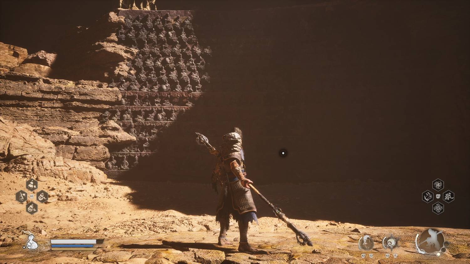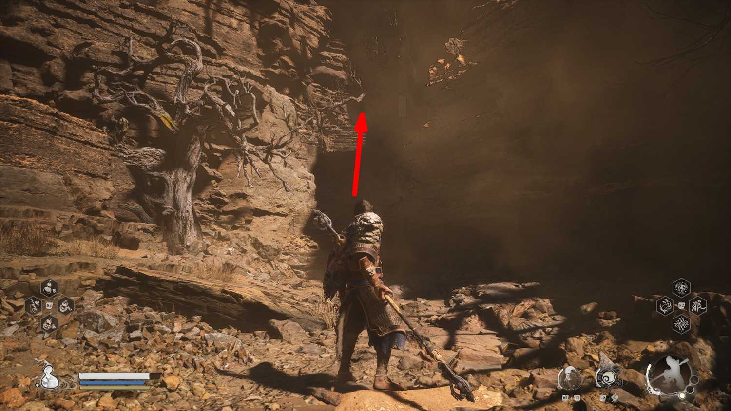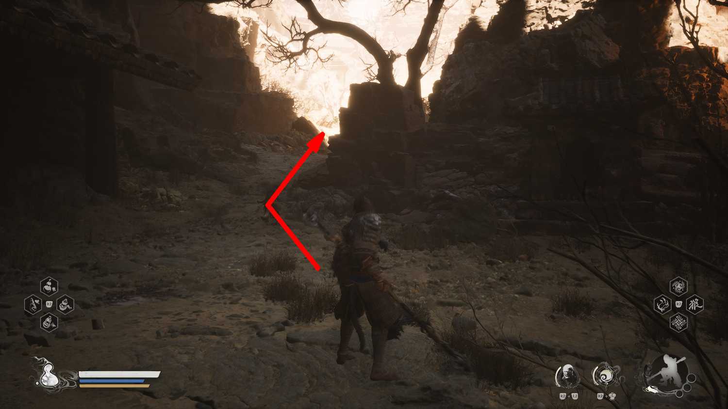 - Экипируйте Дух Блуждающего Монаха из Black Myth: Wukong и используйте его способность, чтобы сломать украшенную стену на арене.