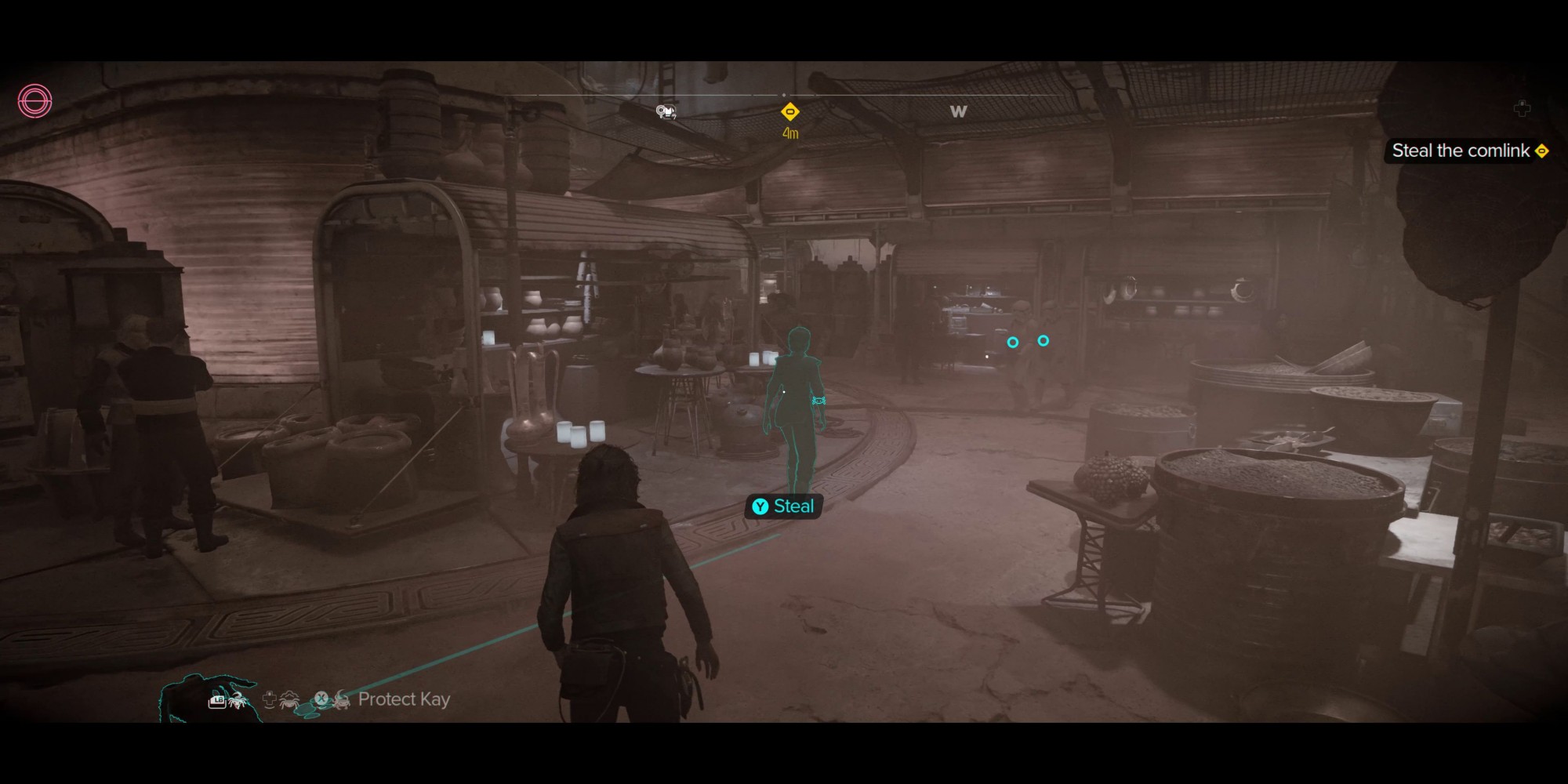 В начале миссии игрокам Star Wars Outlaws нужно отправиться на рынок Мироганы и найти агента Багрового Рассвета, которая стоит в одном из углов. Найдя ее, игроки должны нажать кнопку R3, чтобы сесть за ближайший стол и прослушать ее переговоры. После этого им будет предложено украсть комлинк, что для некоторых может оказаться проще сказать, чем сделать.