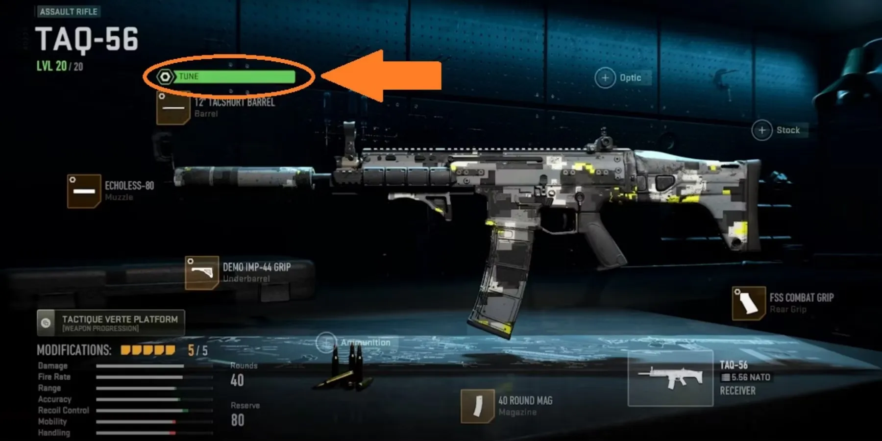 В этот момент станет доступна функция настройки. Посмотрите на отдельные насадки для оружия и обратите внимание на наличие кнопки "настроить". Выберите эту кнопку, чтобы начать работу.