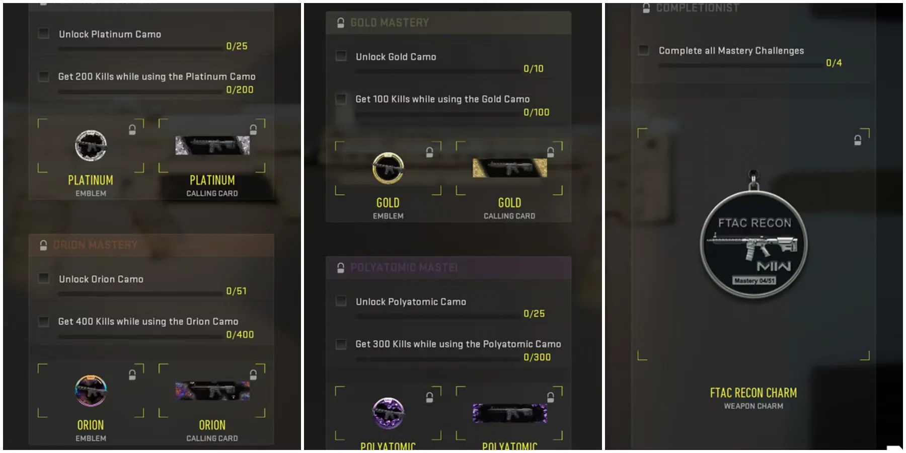 Но чтобы перейти к платиновым заданиям мастерства, игроки должны выполнить минимальное количество заданий с золотым камуфляжем в определенной категории оружия.