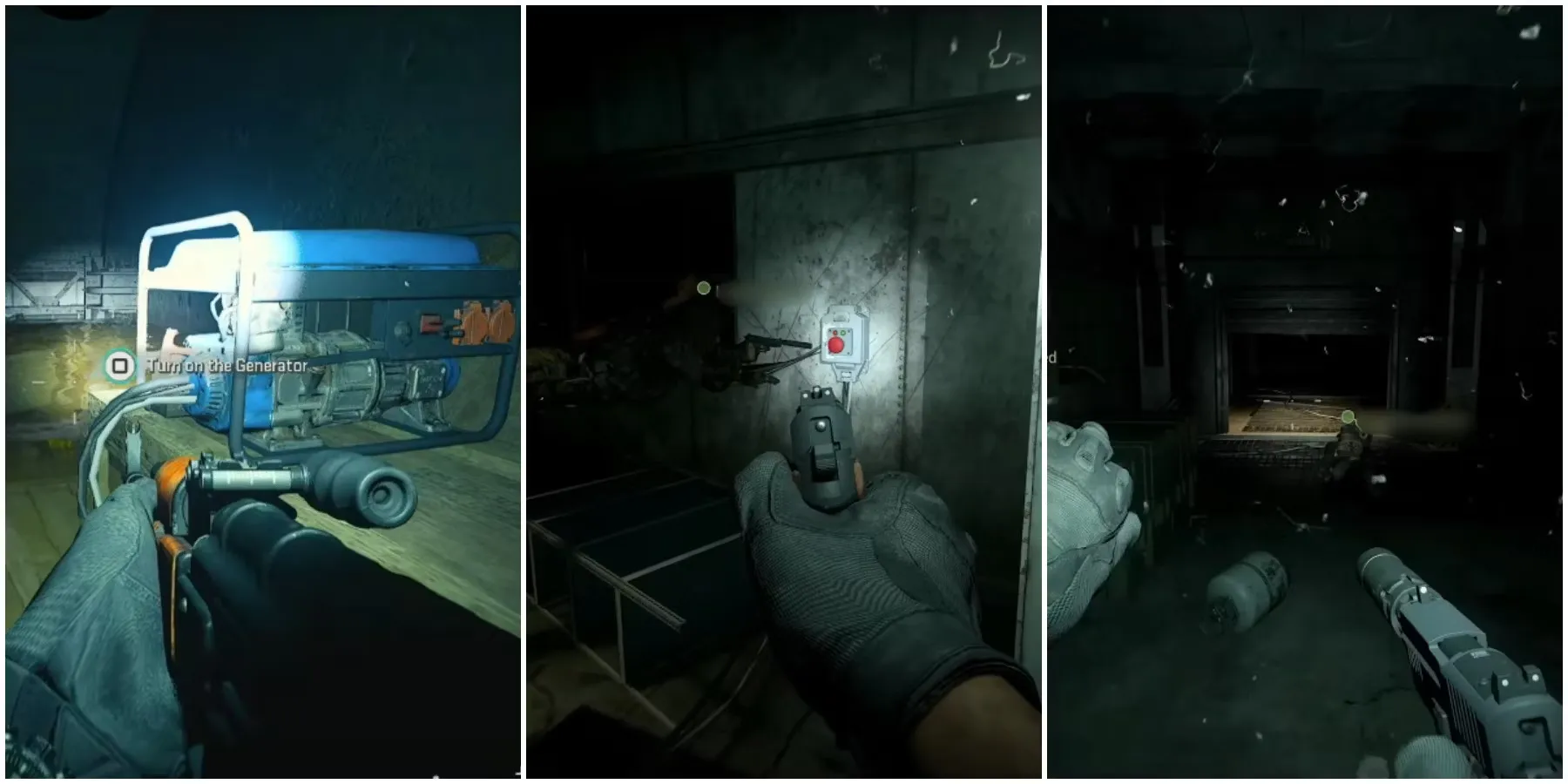 Чтобы узнать оставшиеся два числа, игроки должны войти в комнату с металлическим затвором. Для этого этапа (как и для Call of Duty Warzone 2) очень важна коммуникация, поскольку один игрок должен удерживать дверь открытой, нажимая красную кнопку, в то время как другой входит в комнату. Оказавшись внутри, игроки должны снова просмотреть камеры видеонаблюдения и найти два последних номера.