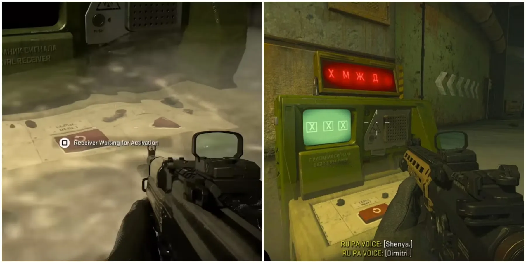 Игроки должны знать, что иногда будут появляться четыре русские буквы, но это не имеет значения, пока игроки правильно вводят первые три цифры. После ввода последней последовательности кодов откроется дверь перед комнатой управления.