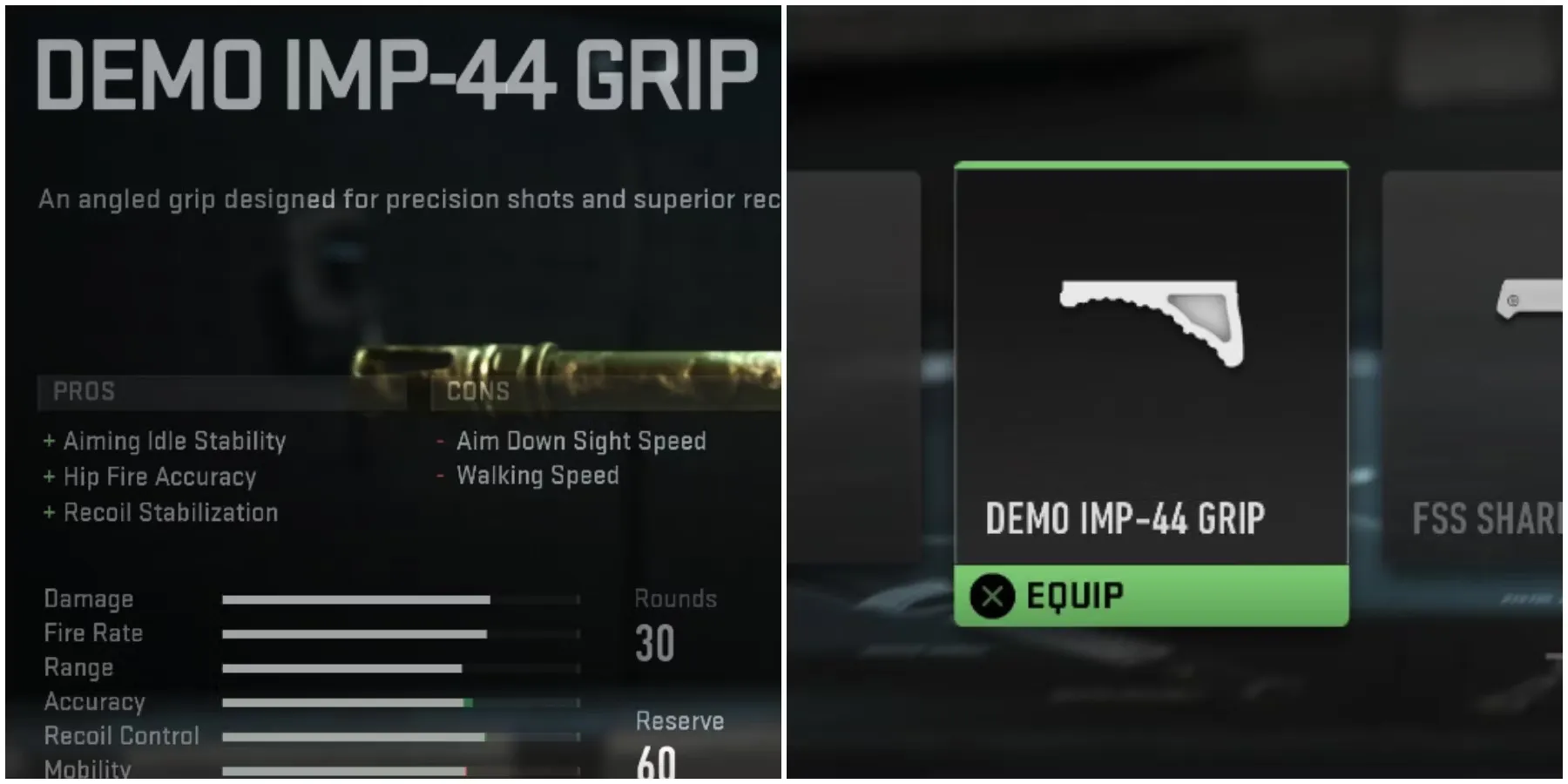 Большинство штурмовых винтовок менее чем идеально подходят для стрельбы от бедра по врагам, поэтому игроки, которые хотят одолеть вражескую команду, захотят иметь Demo IMP-44 Grip из категории Underbarrel. Этот подствольник повышает точность стрельбы от бедра, делая игроков опасными в ближнем бою. Кроме того, Demo IMP-44 Grip немного повышает стабильность прицеливания и стабилизацию отдачи, что очень важно для повышения точности.
