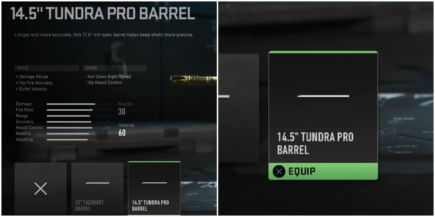 Когда дело доходит до стволов, TAQ-56 имеет только два варианта: 12" TacShort Barrel и 14,5" Tundra Pro Barrel. Игроки захотят использовать 14,5-дюймовый ствол Tundra Pro, поскольку он увеличивает общую дальность поражения, что идеально подходит для больших карт, таких как карты Invasion и Ground War. Кроме того, этот ствол также увеличивает точность стрельбы от бедра.