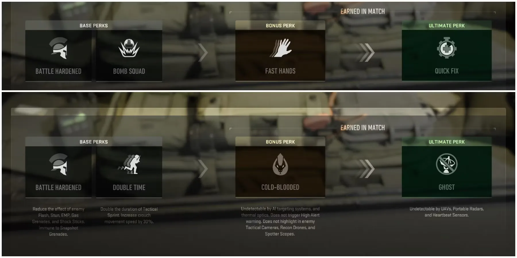 Что касается бонусных перков, игроки могут использовать Fast Hands (сокращается время перезарядки) или Cold Blooded. Что касается Ultimate Perks, то выбор сводится к Quick Fix (мгновенное восстановление HP после убийства или взятия цели) или Ghost (не виден для БПЛА во время движения).