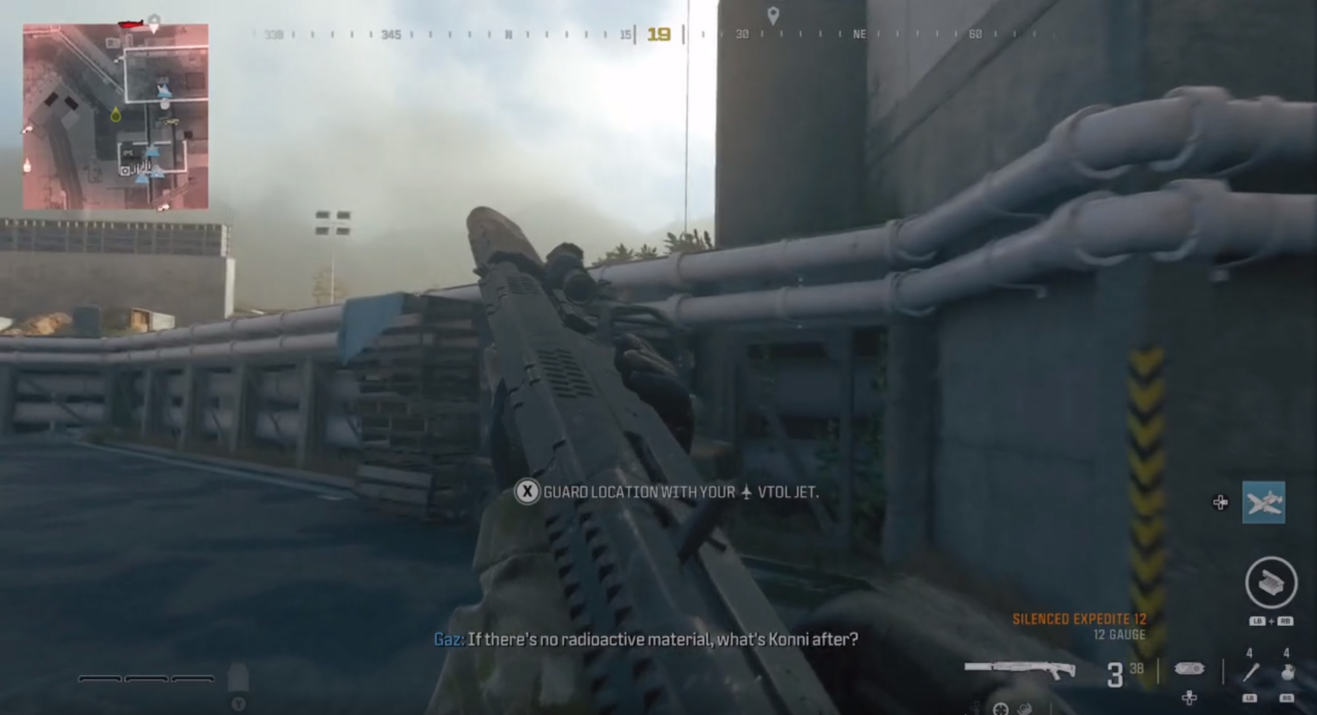 Начните с парашютирования в бетонное здание в правой центральной части комплекса с точки падения с деревянным верхом. Когда игроки приземлятся, на верхнем этаже в северо-западном углу будет находиться минометный расчет - подберите первое оружие и двигайтесь на юг к башне в C-6. К востоку от башни находится пожарная станция - в гараже станции игроки найдут ящик с припасами, но в конечном итоге они захотят забраться на крышу и найти реактивный самолет VTOL на втором уровне крыши. Поменяйте минометный удар на VTOL и вызовите VTOL на первый вертолет Konni, чтобы уничтожить его. VTOL очистит территорию и отвлечет внимание игроков, чтобы они могли бежать вверх по южному краю карты к следующему вертолету в G-7.