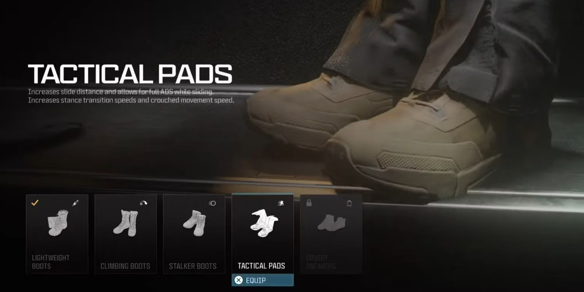 Перчатки Commando Gloves дают игрокам достаточное количество патронов или killstreaks, а пехотный жилет повышает мобильность. Тактические щитки увеличивают скорость передвижения, а Ghost T/V Camo позволяет передвигаться незаметно. Tac Mask ослабляет оглушающие и световые гранаты, а WSP Stinger повышает мобильность.