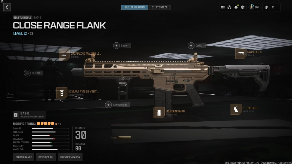 Как и большинство автоматических винтовок, BAS-B по умолчанию отлично справляется с перестрелками на средних дистанциях. Она наносит ощутимый удар, но при этом имеет приемлемую отдачу, что делает ее отличной даже без дополнительного оборудования. Однако его характеристики становятся еще лучше, если начать их изменять. Приведенные ниже настройки направлены на увеличение дальности стрельбы BAS-B за счет снижения отдачи и повышения стабильности и точности стрельбы: