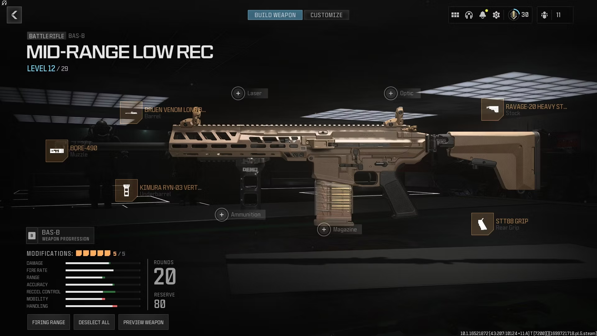 Как и большинство автоматических винтовок, BAS-B по умолчанию отлично справляется с перестрелками на средних дистанциях. Она наносит ощутимый удар, но при этом имеет приемлемую отдачу, что делает ее отличной даже без дополнительного оборудования. Однако его характеристики становятся еще лучше, если начать их изменять. Приведенные ниже настройки направлены на увеличение дальности стрельбы BAS-B за счет снижения отдачи и повышения стабильности и точности стрельбы: