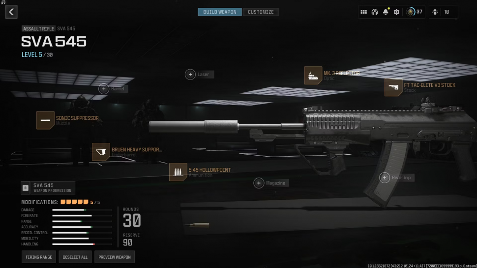 SVA 545 представляет собой баланс между штурмовой винтовкой с полным боезапасом и винтовкой для стрельбы очередями, предлагая игрокам такой уровень универсальности, которого нет ни у одного другого оружия в Call of Duty: Modern Warfare 3. Ниже приводится один из вариантов использования этого оружия, который позволяет использовать возможности гипервзрыва, не жертвуя при этом полностью автоматическим режимом.