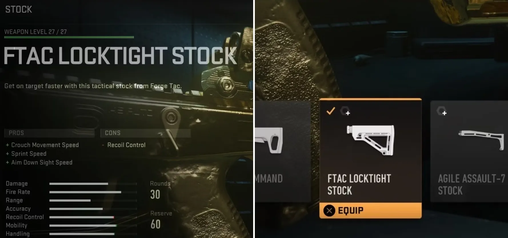 Для Fennec 45 лучше всего использовать приклад FTAC Locktight, так как он немного увеличивает скорость спринта и скорость прицеливания. А поскольку Fennec 45 - это SMG, игроки могут рассчитывать на более быстрое перемещение по карте (тем более с перком Double Time). Единственным недостатком использования FTAC Locktight является снижение контроля отдачи, но с другими насадками игрокам не придется слишком беспокоиться об этом. При настройке стокового оружия игроки должны максимально увеличить скорость спуска прицела и стабильность холостого прицеливания.