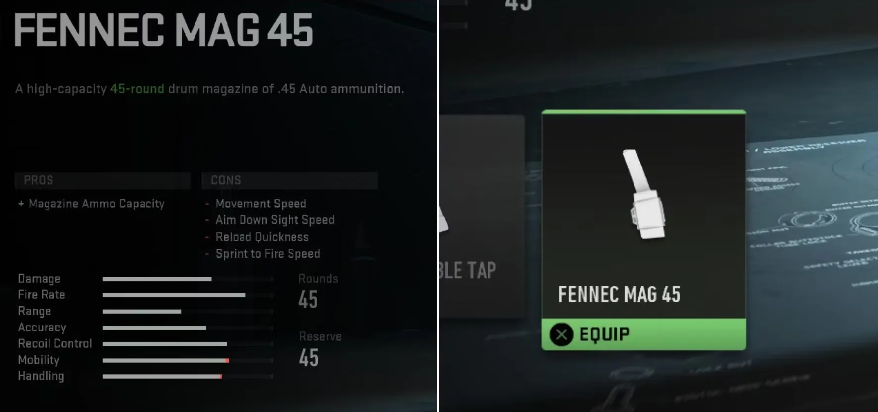 Игроки должны использовать самый большой магазин, доступный для Fennec 45, - 45 Mag. Конечно, увеличение магазина влечет за собой множество минусов, но в целом преимущество в виде большего количества патронов в патроннике компенсирует это.