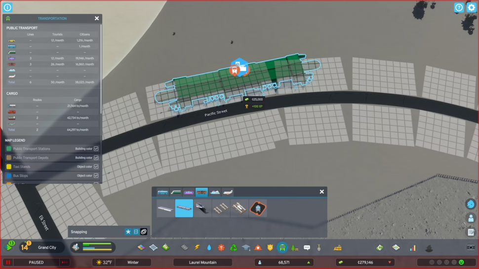 - Поезда и метро предпочитают длинные пологие кривые, а не острые углы. При прокладке путей избегайте использования режима прямолинейного инструмента.
