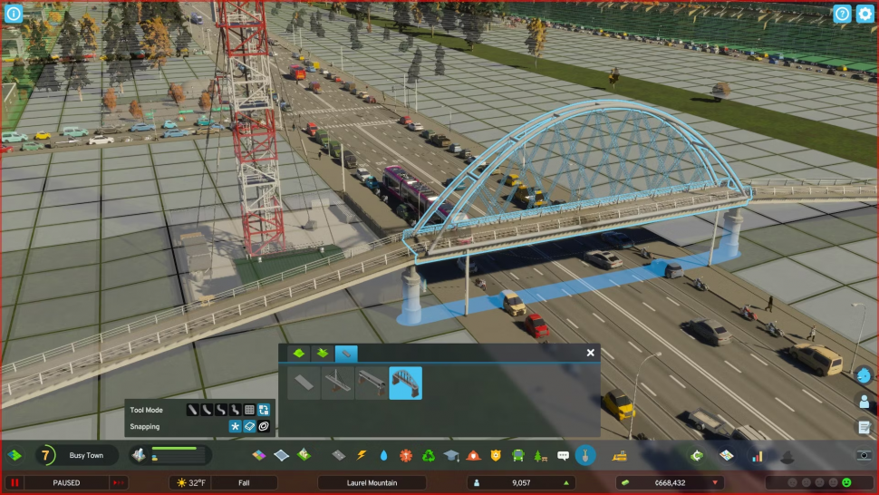 При широком использовании пешеходных мостов игроки могут позволить себе строить дороги, которые подходят друг к другу, не соприкасаясь, а затем прокладывать дорожку, чтобы завершить соединение. Это побуждает жителей ходить пешком, а не ездить на машине, и помогает игрокам направлять транспортный поток на широкие дороги, которые могут его выдержать.