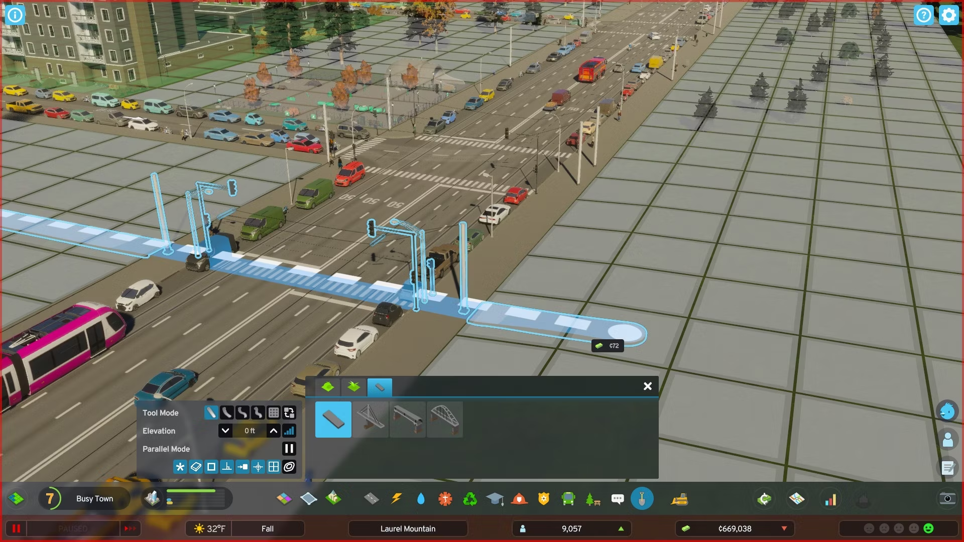 Если игроки не хотят загромождать дороги еще одним перекрестком, они могут построить пешеходную эстакаду или подземный переход с помощью инструмента "Тротуарная дорожка". Этот инструмент имеет все те же режимы, что и обычные дороги, включая возможность увеличивать и уменьшать высоту дорожки. Это означает, что игроки могут строить эстакады, позволяющие пешеходам пересекать оживленную улицу без остановки транспорта.
