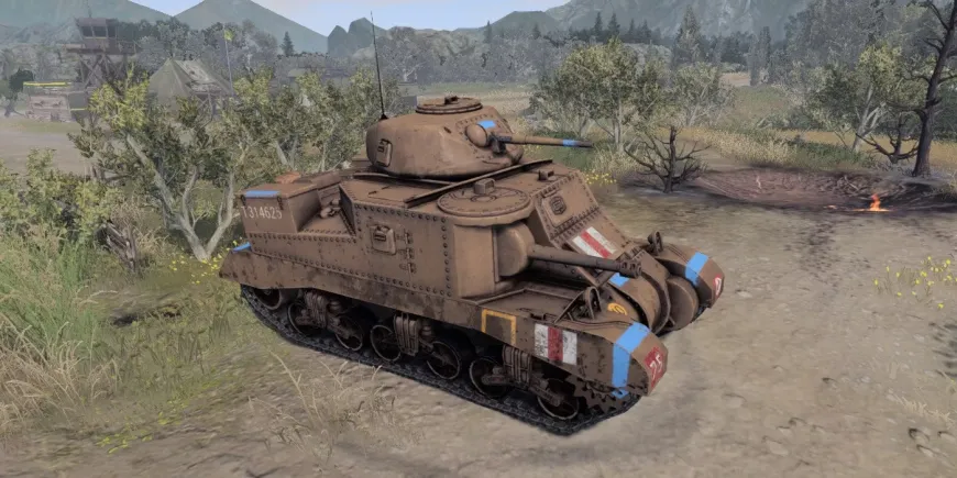 Легкий танк M3 Stuart (280 рабочей силы, 45 топлива, 8 pop, но сначала его нужно разблокировать на командном пункте взвода, потратив 125 рабочей силы и 40 топлива)