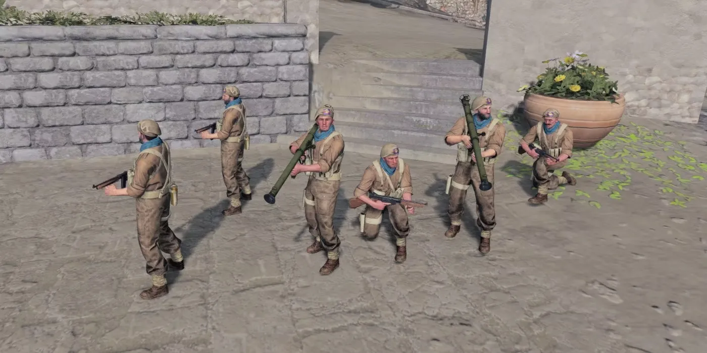 - Отдельные пехотные отделения также могут быть модернизированы с помощью пакета Recce (45 боеприпасов), пакета Boys Anti-Tank Rifle (50 боеприпасов) или пакета Bren Light Machine Gun (100 боеприпасов).