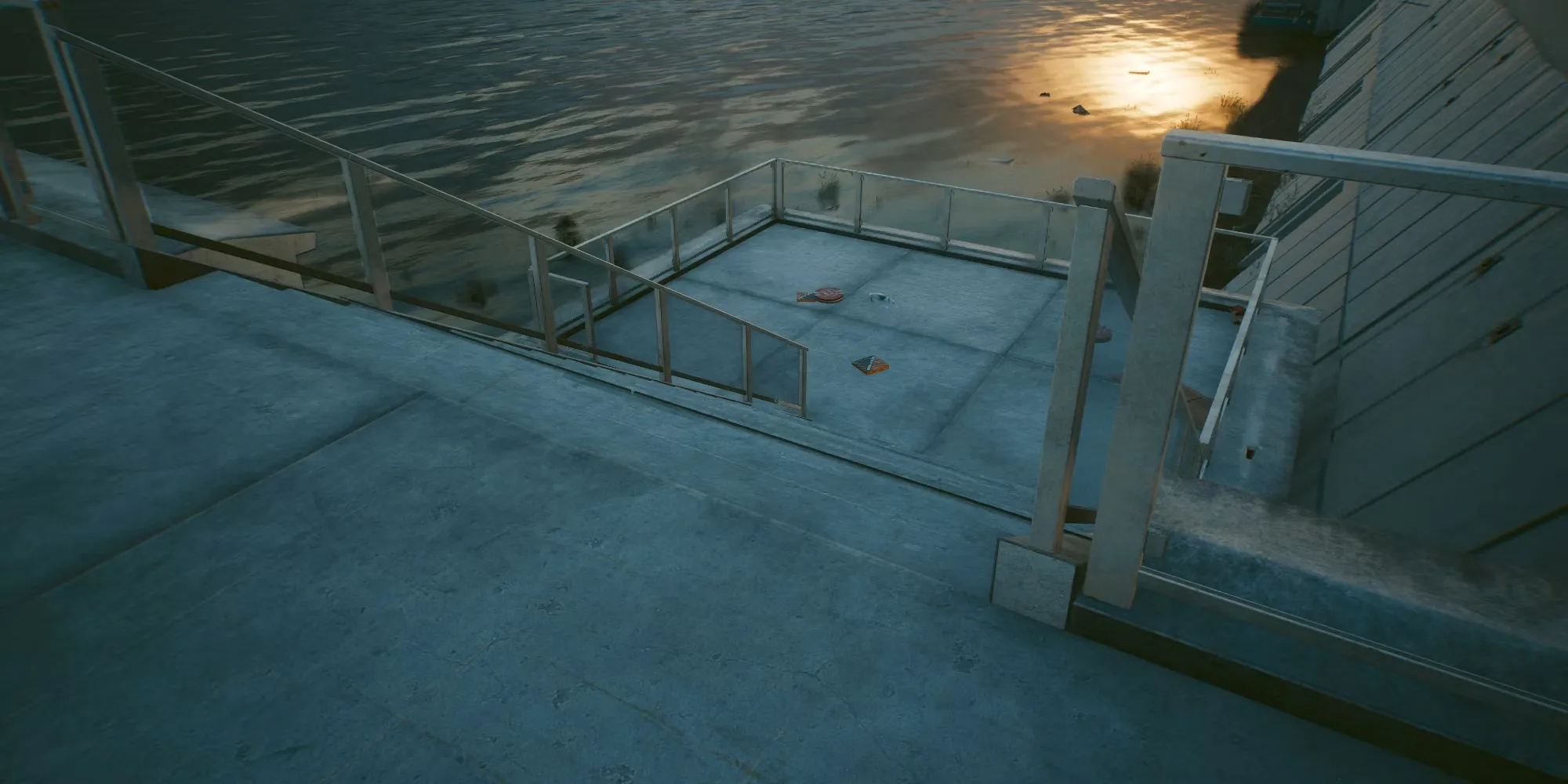 Ищите прилавок с едой и желтыми зонтиками. Игроки могут перепрыгнуть через зонтики, чтобы забраться на крышу киоска, если у них нет модификации двойного прыжка.