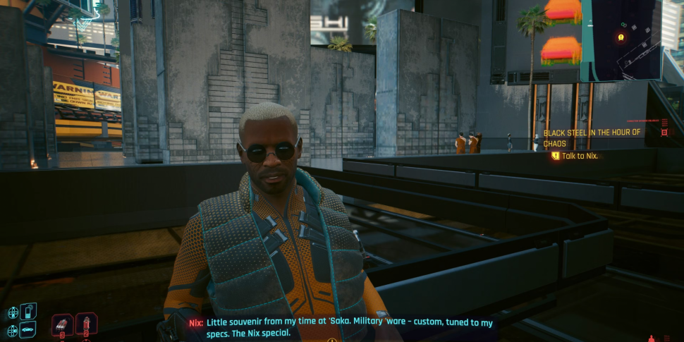- Никс - Никс - друг Роуга и поможет игроку, если тот помог ему в Загробном мире. Никс легко взламывает MaxTac и без последствий выдает Ви классические киберпатроны, так что это хороший выбор.
