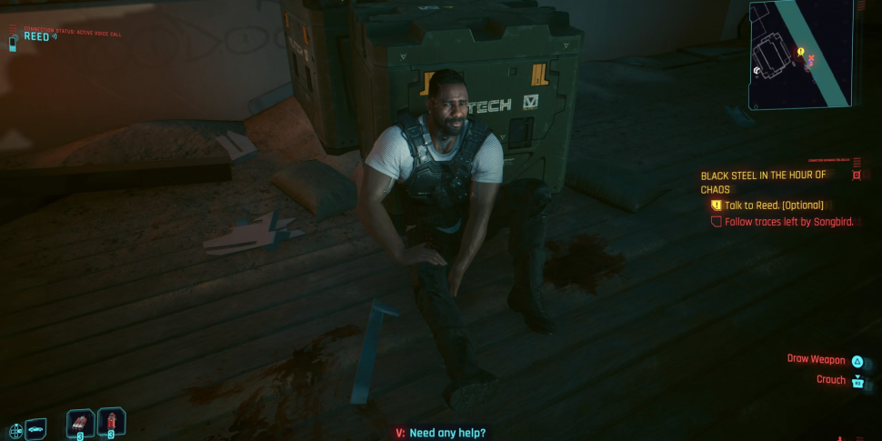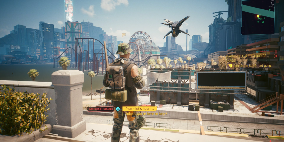 Выйдя вслед за Ридом на улицу, Ви попадет к члену банды 6-й улицы, управляющему беспилотником. Член банды 6-й улицы объясняет, что они могут расставлять ловушки, а Ви может делать это вручную с помощью дрона. Лучше всего сделать это с помощью дрона и расставить ловушки, чтобы лучше контролировать поле боя. Здесь описано, что делает каждая ловушка и какие из них следует использовать: