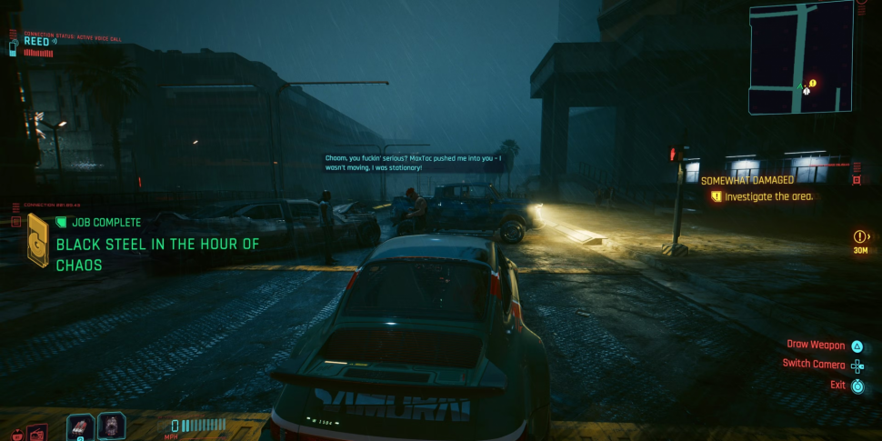 Независимо от того, проверяли Рида или нет, игроки захотят побежать или взять транспортное средство, чтобы проследовать по дорогам разрушений, вызванных Songbird, в результате чего они окажутся на перекрестке с двумя столкнувшимися автомобилями. Справа находится огромная дыра в стене, в которую протаранил грузовик MaxTac, и таким образом начнется миссия Somewhat Damaged. Игроки не могут уйти и заняться чем-то другим, поскольку задания "Черная сталь в час хаоса" и "Немного повреждений" взаимосвязаны и должны быть выполнены одно за другим.
