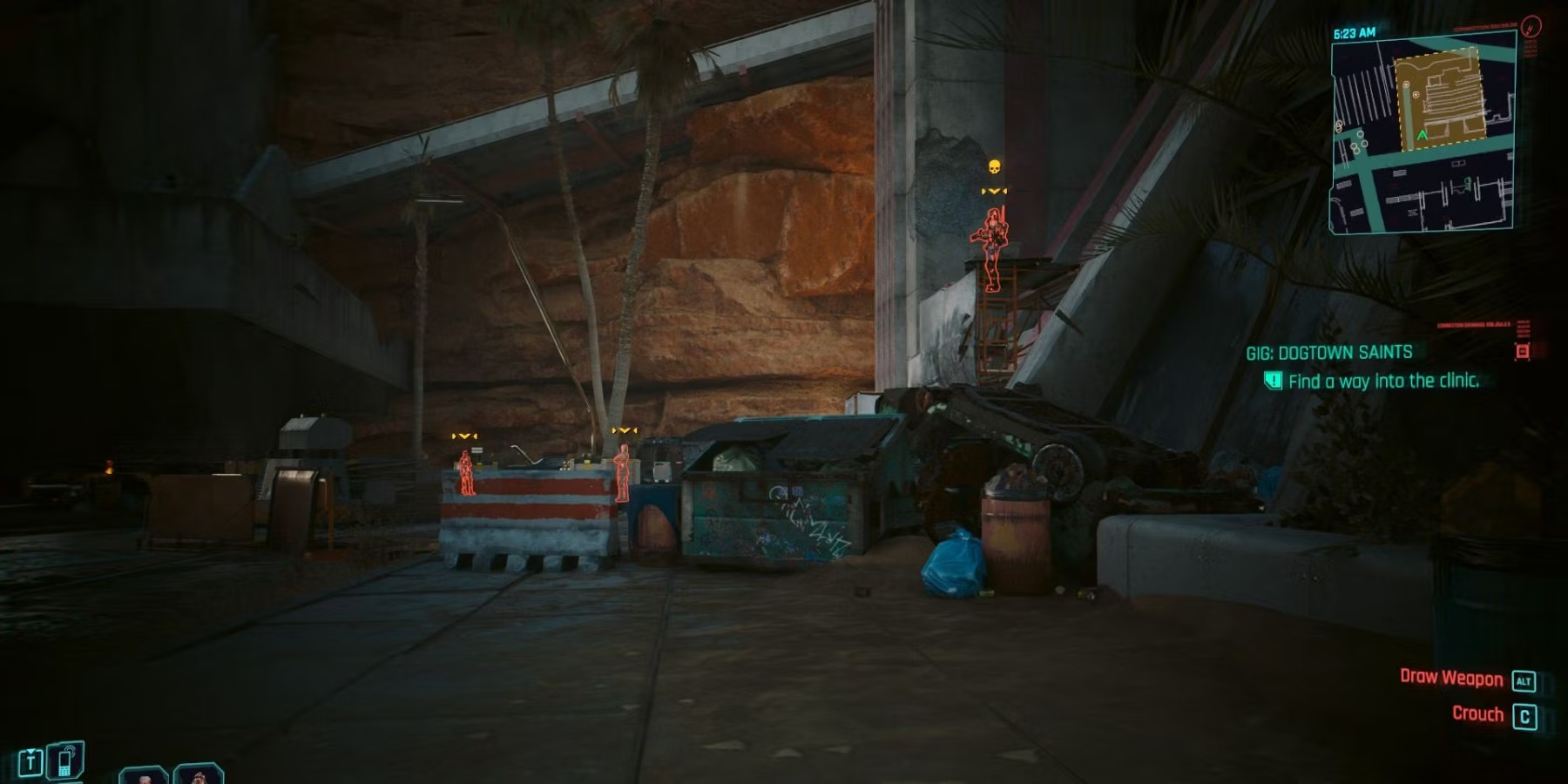 Dogtown Saints - это ранняя работа в Phantom Liberty, доступная игрокам после завершения одной из начальных миссий, Spider and the Fly. Работу им предложит мистер Хэндс, который позвонит Ви и объяснит ситуацию. Энтони Андерсон управляет медицинской клиникой, и его офис захвачен в заложники падальщиками.