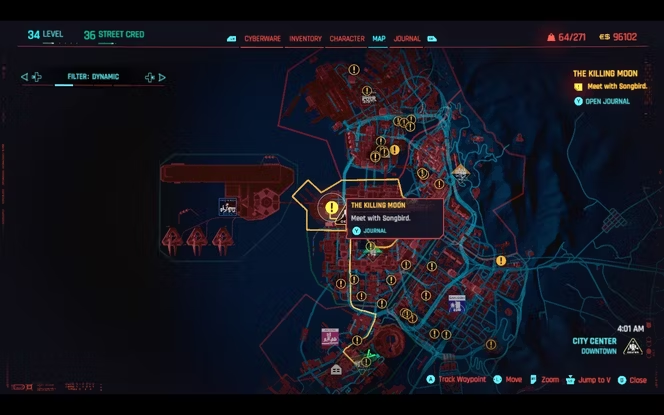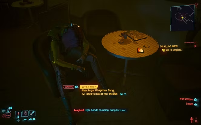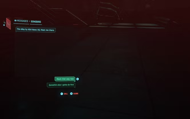 Миссия The Killing Moon начинается с указания игрокам ждать новостей от Songbird, но, к сожалению, способ инициировать контакт с ней выглядит несколько непоследовательным. Так, некоторым фанатам удается вызвать Рида из Cyberpunk 2077, а затем и Сонгберд, путем многократного использования функции "Пропустить время", в то время как другие говорят, что этот способ не приносит им успеха.