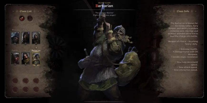 Варвар - один из 6 классов, доступных для игры (по крайней мере, пока) в многочисленных альфа-тестах игры Dark and Darker. Что касается "роли" варвара в игре, то это то, что, вероятно, ожидает тот, кто видел класс варвара в других играх. Варвар - это персонаж типа громилы, у которого чрезвычайно низкая скорость передвижения и скорость взаимодействия, но при этом абсурдно высокий урон и максимальное количество HP.