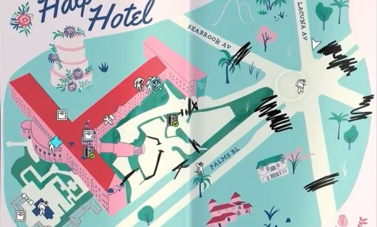 Как только ключ будет добавлен в инвентарь, вернитесь в отель на противоположном конце бульвара Палмс. Подойдите к кислотному бассейну на внешней стороне отеля. На другом конце бассейна находится секция, заполненная кислотными шариками. Красочная надпись внутри гласит: "Все будет хорошо", а чуть ниже этой надписи находится контейнер, который теперь можно открыть ключом. Разберитесь с наполненными гноем врагами так, как сочтет нужным игрок, и откройте контейнер, чтобы получить приз.