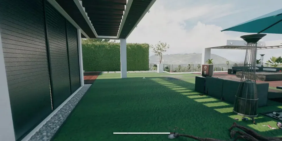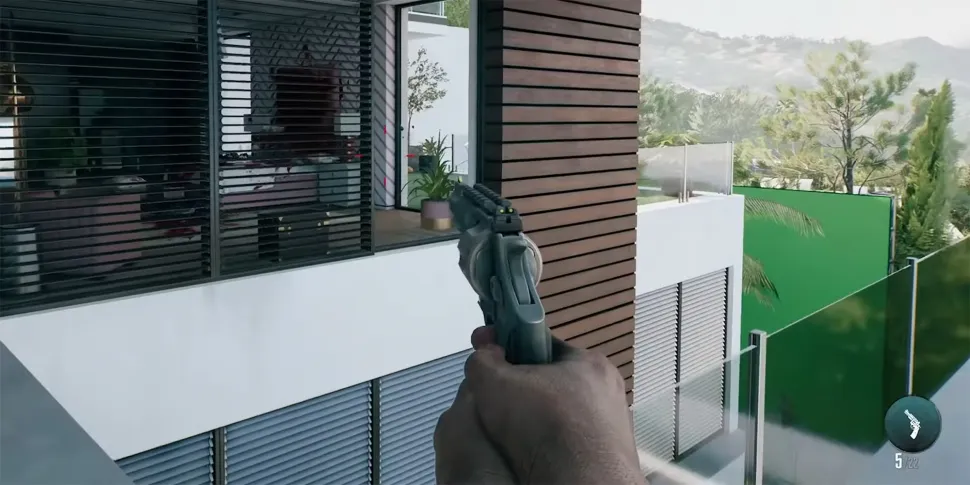Поэтому, если игроки просто выйдут к бассейну, расположенному на том же уровне, что и входная дверь, и подойдут к месту, которое находится на одной линии с главной спальней, они увидят, что от спальни их отделяет лишь небольшая щель. Чтобы попасть внутрь, просто бросьте оружие, Curveball или выстрелите из пистолета, чтобы разбить стекло, разбейте стеклянное ограждение со стороны бассейна, а затем перепрыгните через него в Спальню.